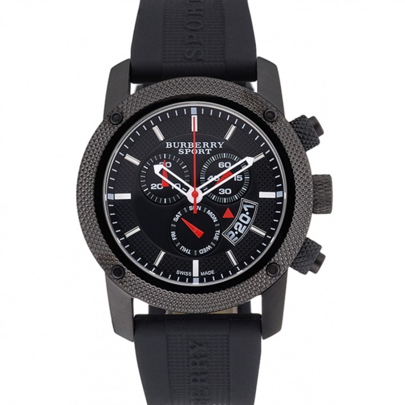 Ronda Burberry Sport Cronógrafo Blanco Caja Negro Dial Negro Pulsera Caucho 622618