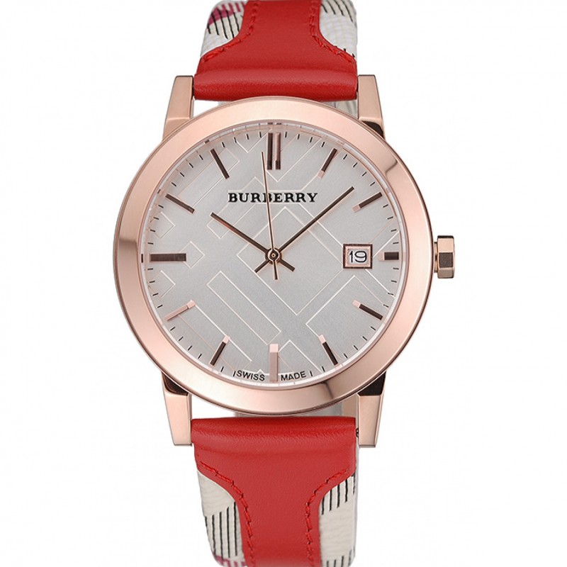 Burberry The City Classic Silver Dial pulsera roja 622567