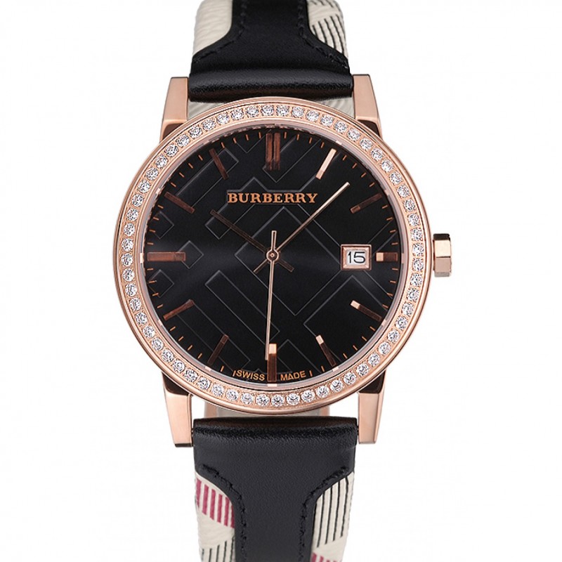 Los diamantes Burberry La clásicos del Caso Negro Dial Negro Pulsera 622569