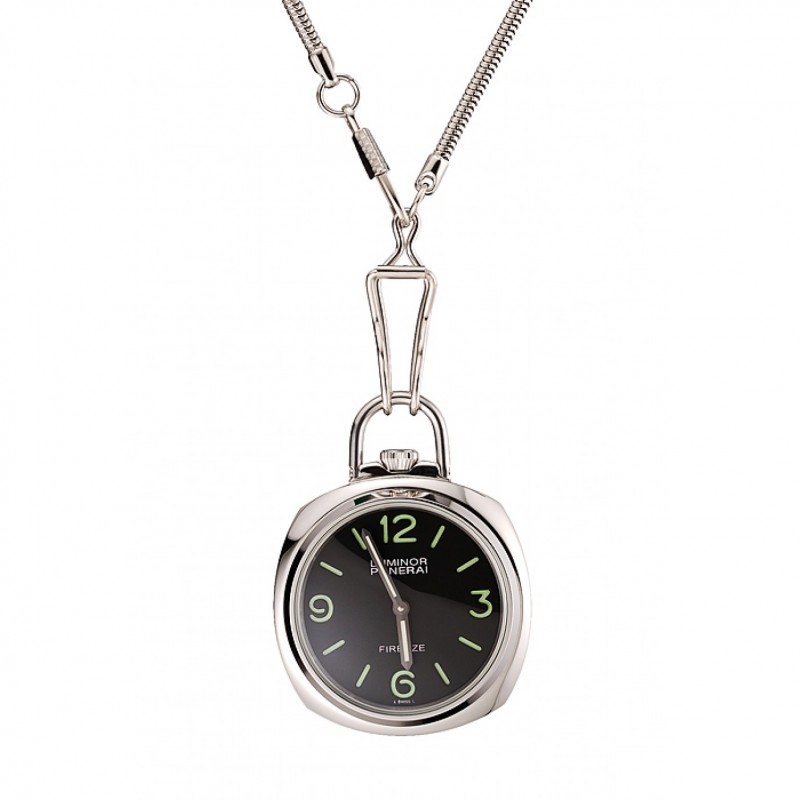Suiza Panerai Luminor reloj de bolsillo Negro Dial Caja de acero inoxidable y cadena 1453743