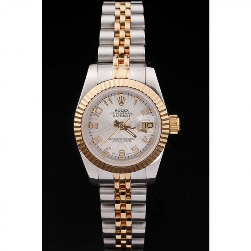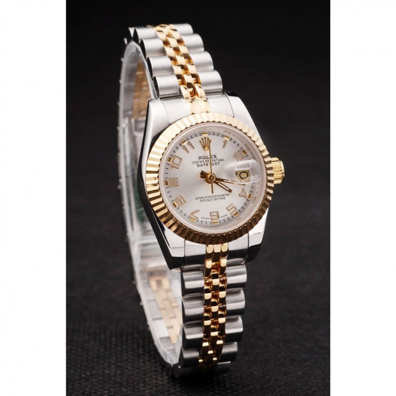 El «Rolex Lady Datejust», un símbolo de sofisticación y funcionalidad, representa la máxima expresión de la relojería suiza en la colección Datejust. Este modelo destaca por su mecanismo cinético automático número 2871, equipado con un movimiento ETA suizo de alta calidad que garantiza una precisión excepcional. Su caja sólida de acero inoxidable cepillado con forma de barril, combinada con un bisel redondo de oro amarillo de 18k tallado, ofrece una combinación perfecta entre robustez y lujo, ideal para las mujeres que buscan elegancia y durabilidad en un único accesorio.