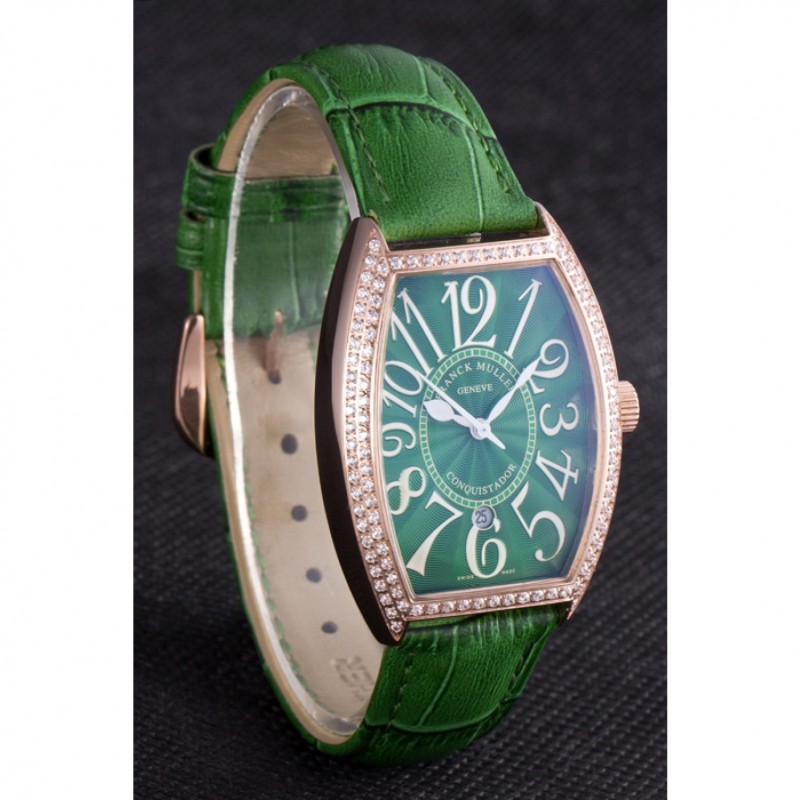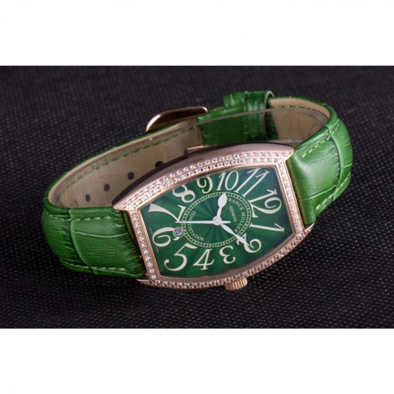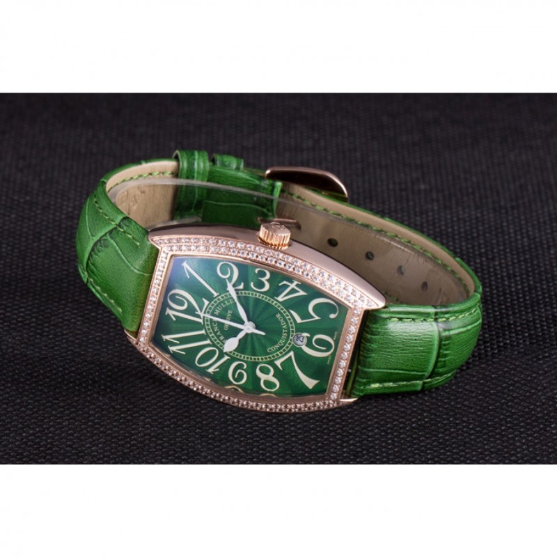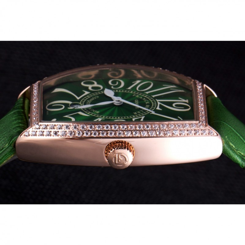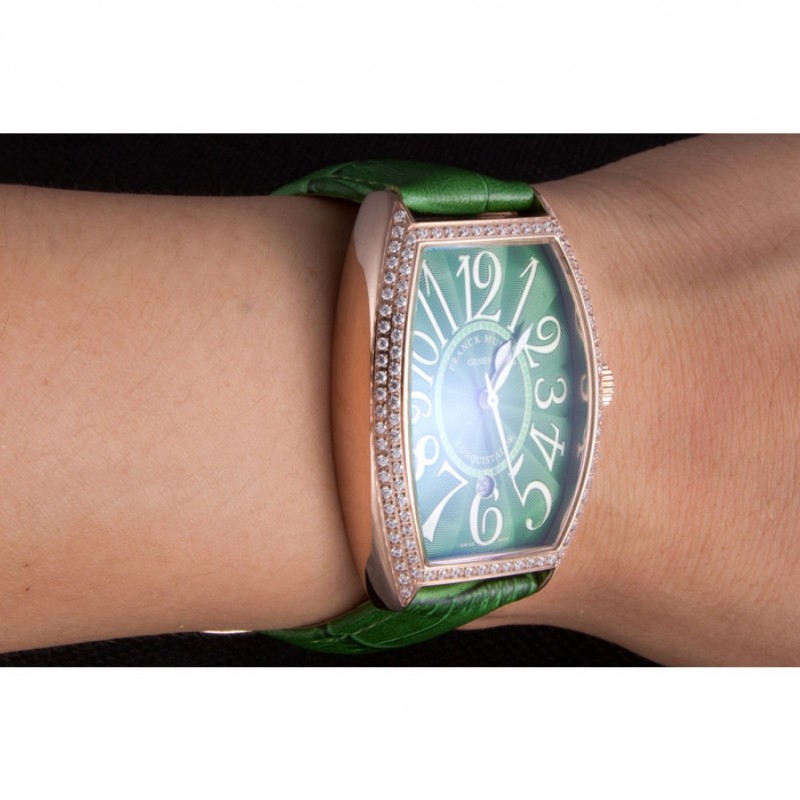 Inicio / Franck Muller / Banda de cuero Franck Muller Casablanca verde Croco cristal incrustada Bisel 621646