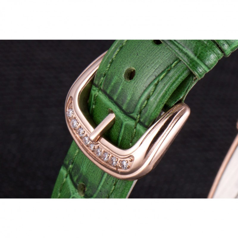pulsera: Franck calor Muller Geneve en relieve correa de piel de cocodrilo verde con 18k pendiente de diamante rosa bañados en oro gancho hebilla de cierre