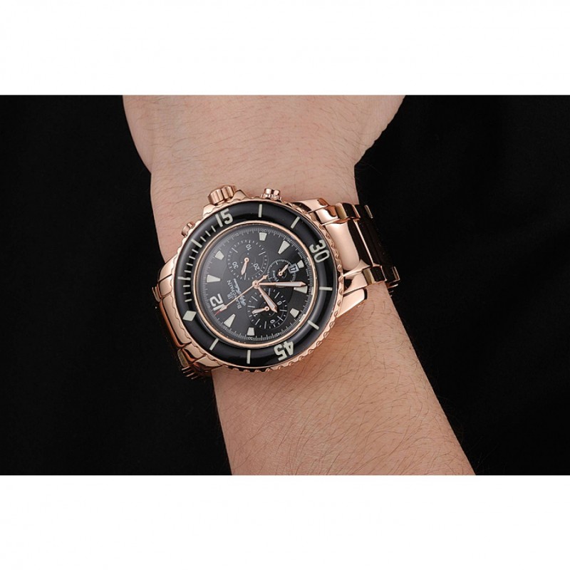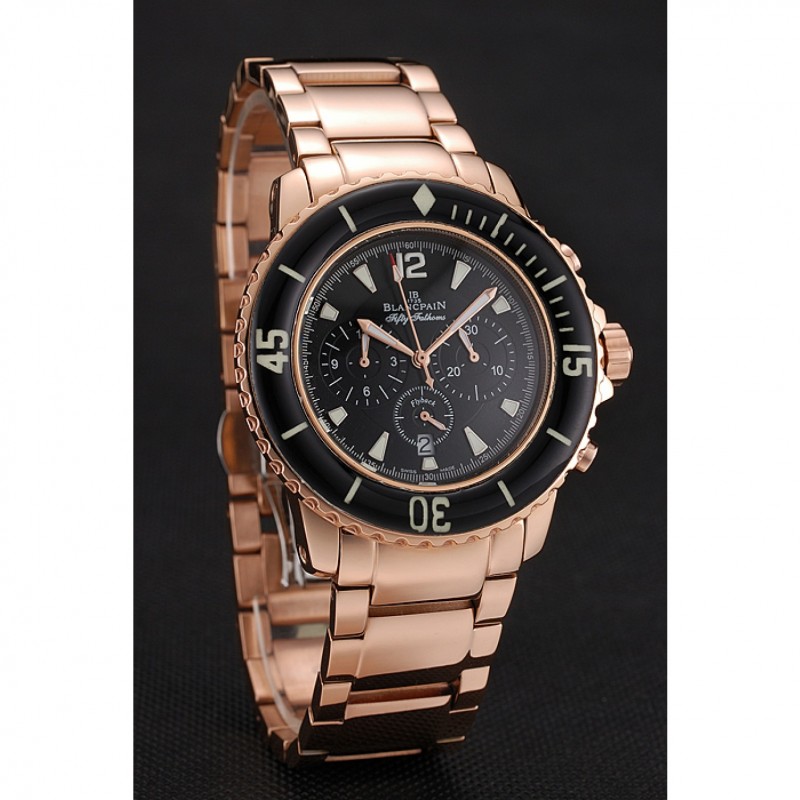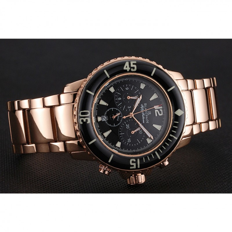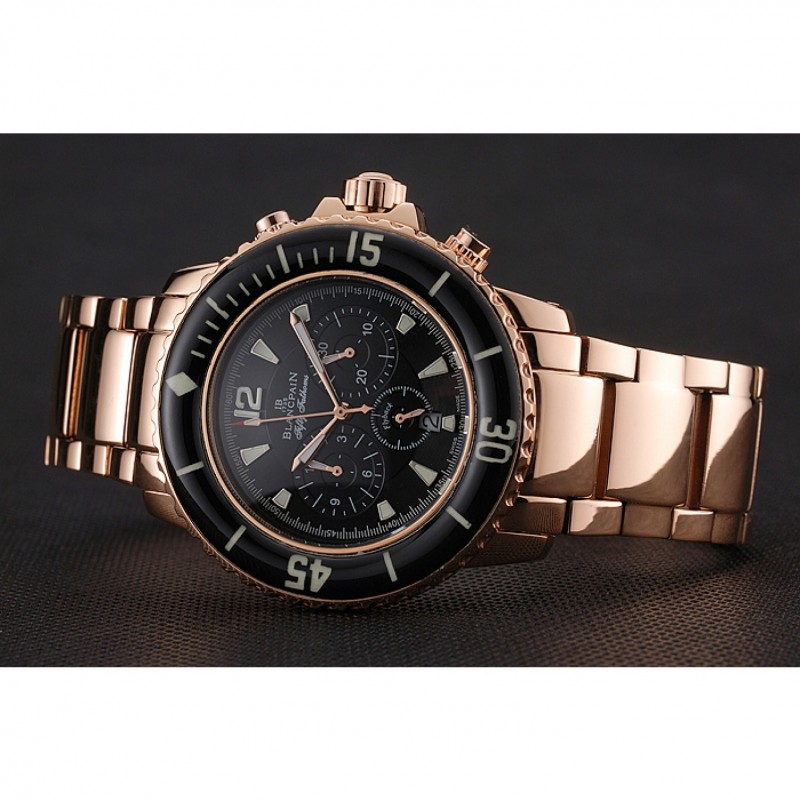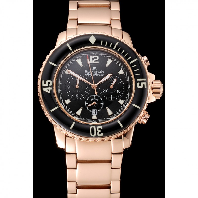 Blancpain Cincuenta Brazas Flyback Cronógrafo Negro Dial Caja de oro rosa y pulsera 1453772
