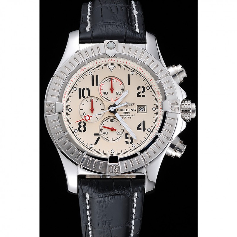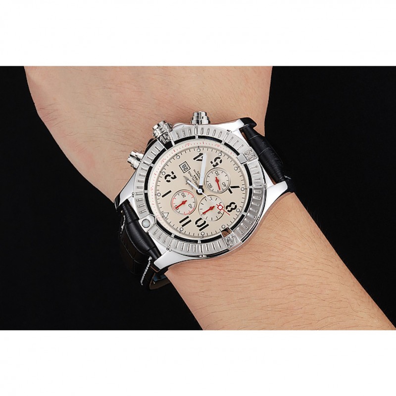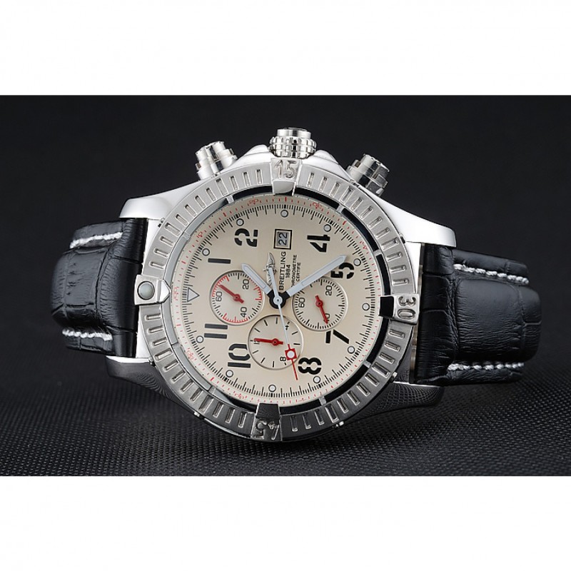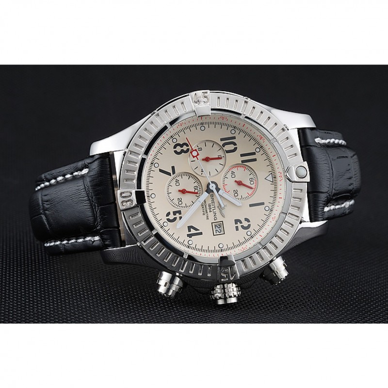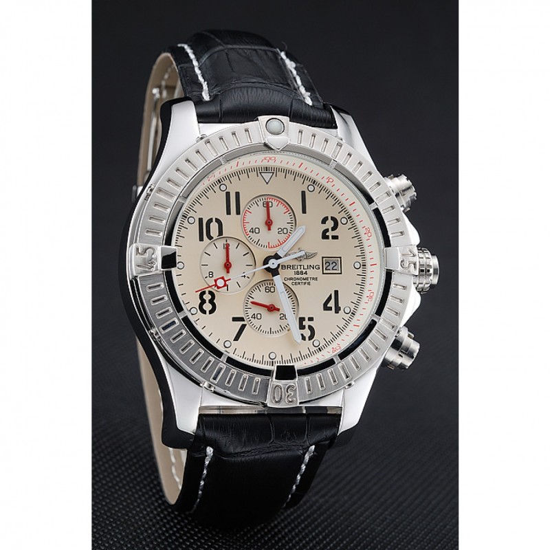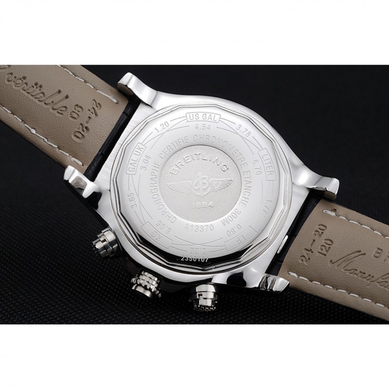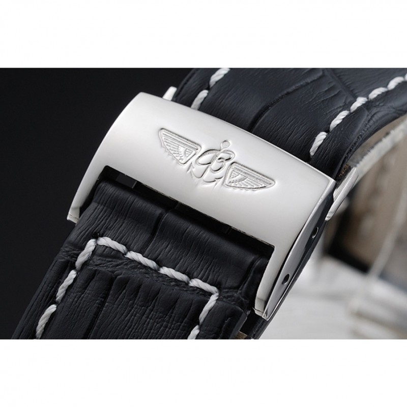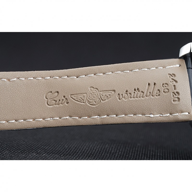 pulsera:. Negro piel de alta calidad en un patrón de cocodrilo, con pesado las costuras de algodón blanco. banda interior bronceado se grabado con el nombre y el logotipo de Breitling, y tiene un cierre de hebilla de acero