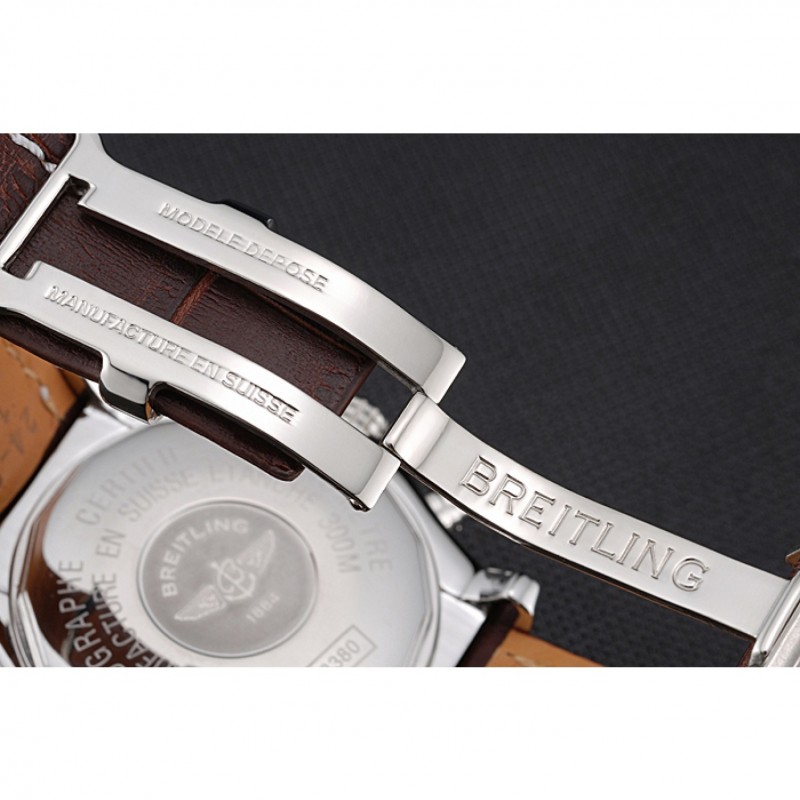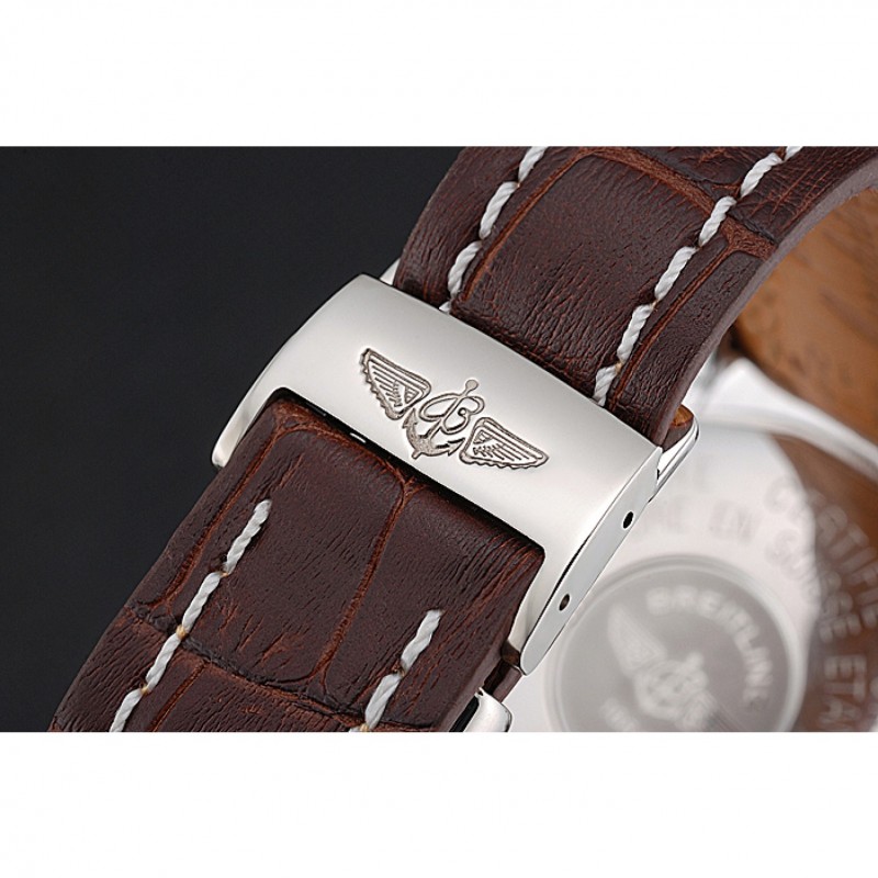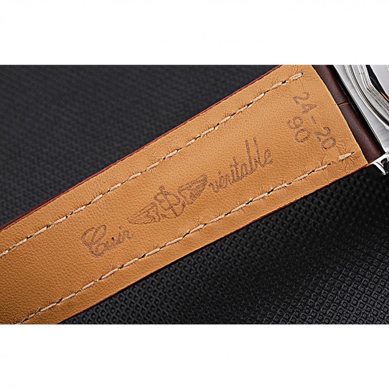 pulsera:. Warm caoba color piel de alta calidad en un patrón de cocodrilo, con las costuras de algodón pesado blanco. banda interior bronceado se grabado con el nombre y el logotipo de Breitling, y tiene un cierre de hebilla de acero