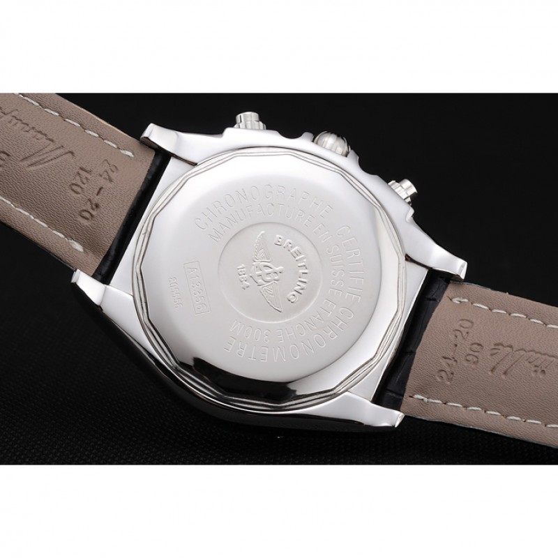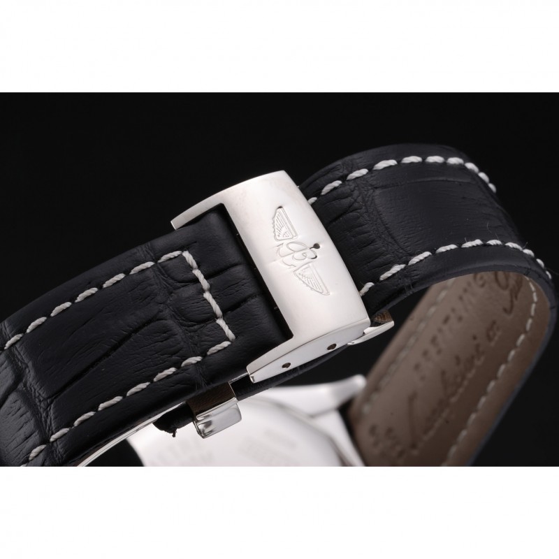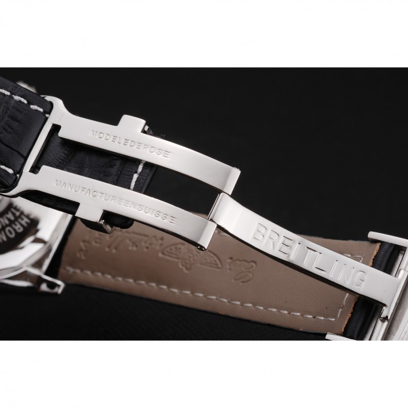 pulsera: Breitling estampada correa de cuero negro con cierre de hebilla de gancho