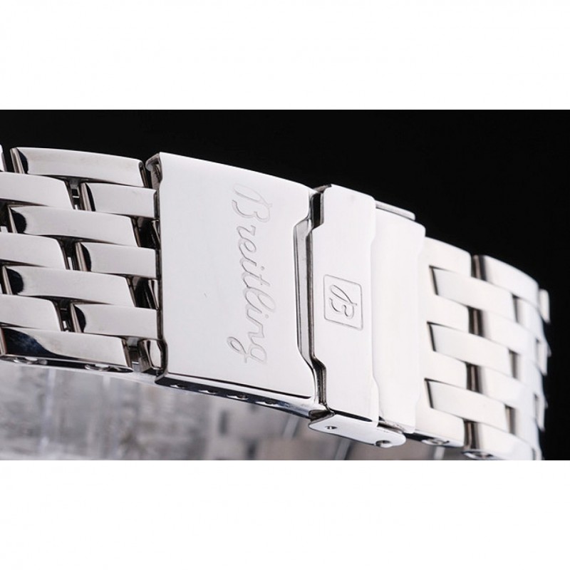 pulsera: finamente vinculados brazalete de acero inoxidable pulido con el código de fecha y Breitling grabado liberación pulsador doble por la hebilla