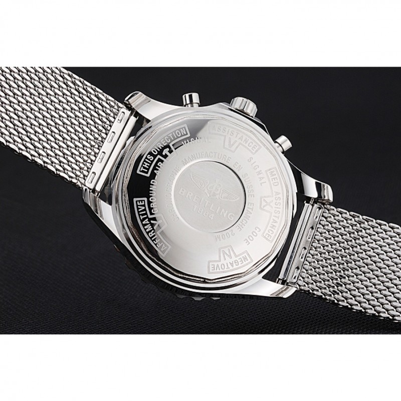corona: pulido corona cutwork acero inoxidable con el logotipo de Breitling y dos pequeñas coronas de pulsador redondas sobre cada lado de ella