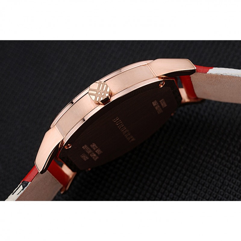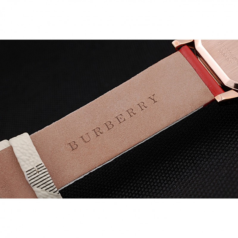 pulsera: correa de cuero rojo Burberry calor en relieve con Burberry cuero de la impresión a cuadros recortar a lo largo de los bordes y Burberry grabado 18k-oro rosa plateado gancho hebilla de cierre