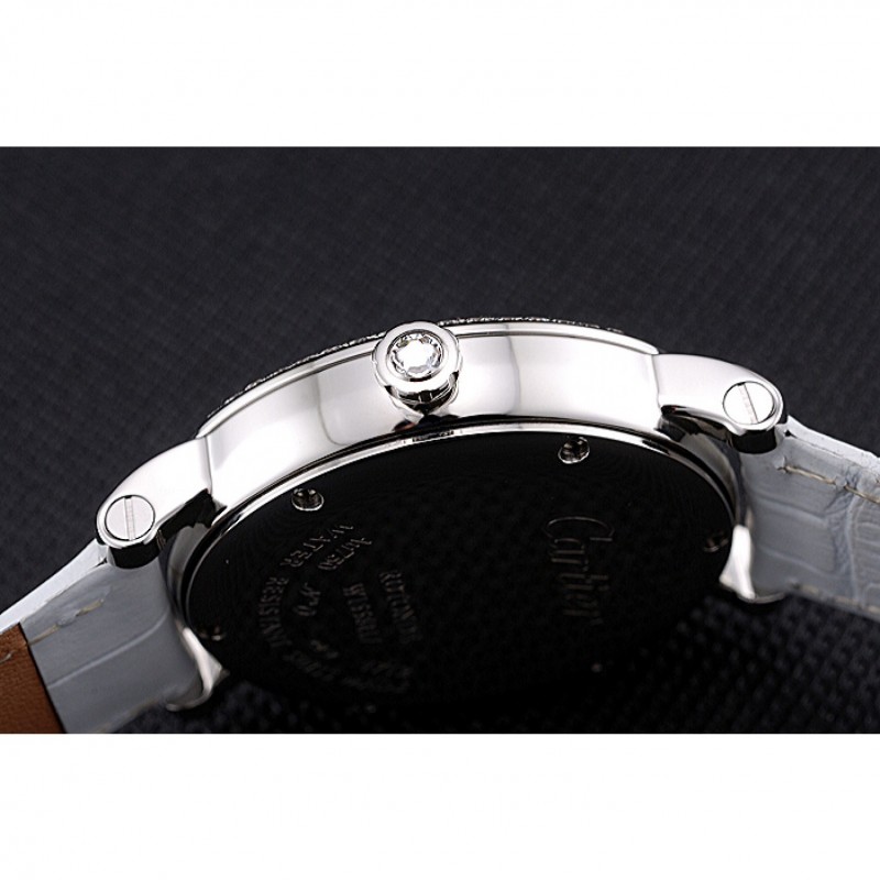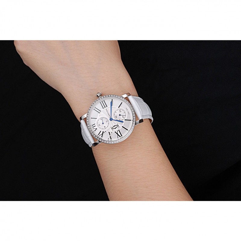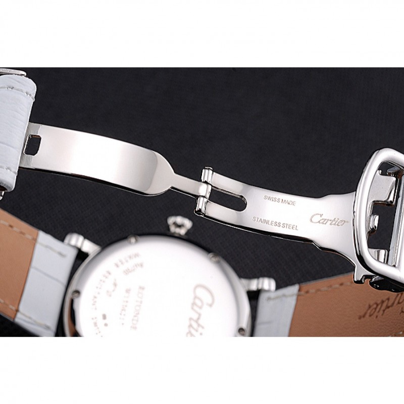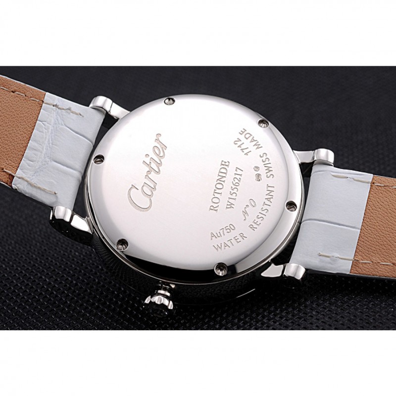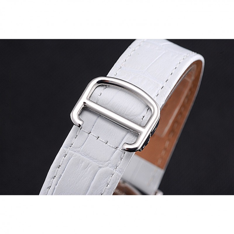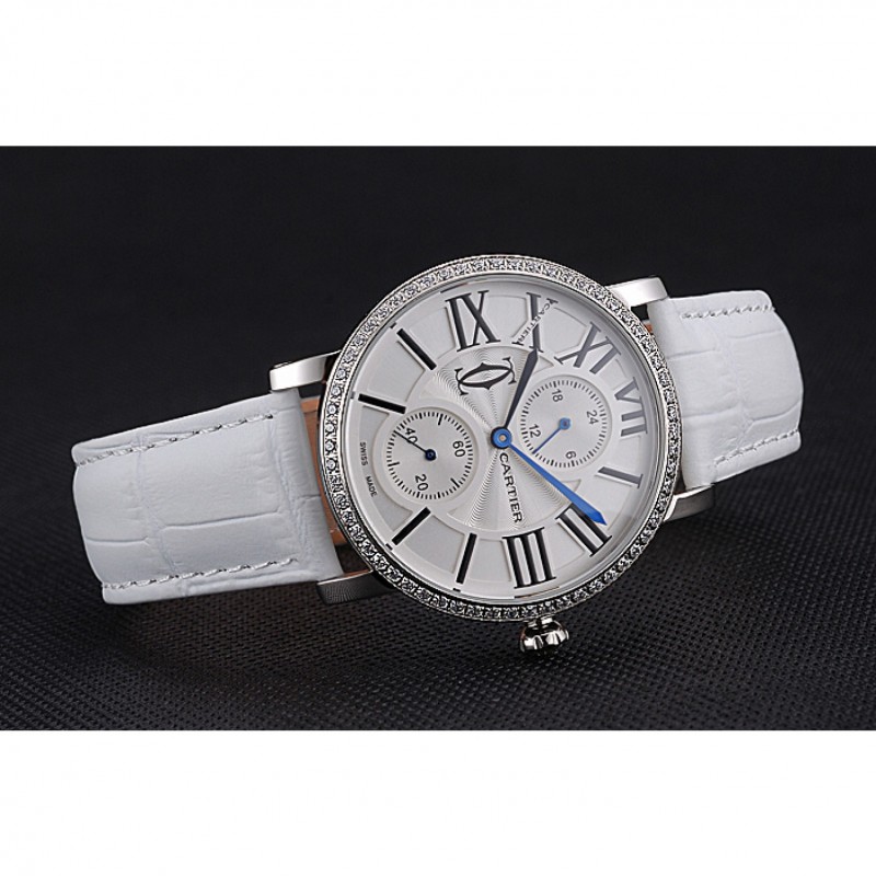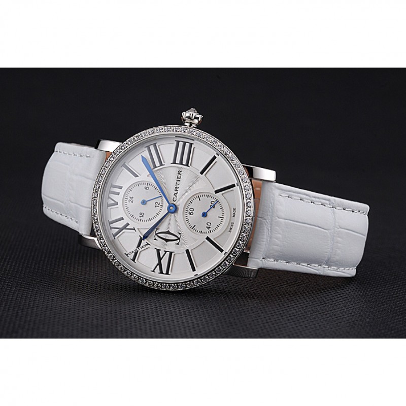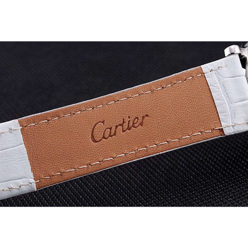 Inicio / Cartier / Cartier Ronde Segunda zona horaria Esfera Blanca, caja de acero inoxidable con correa de cuero blanco 622803 Diamantes