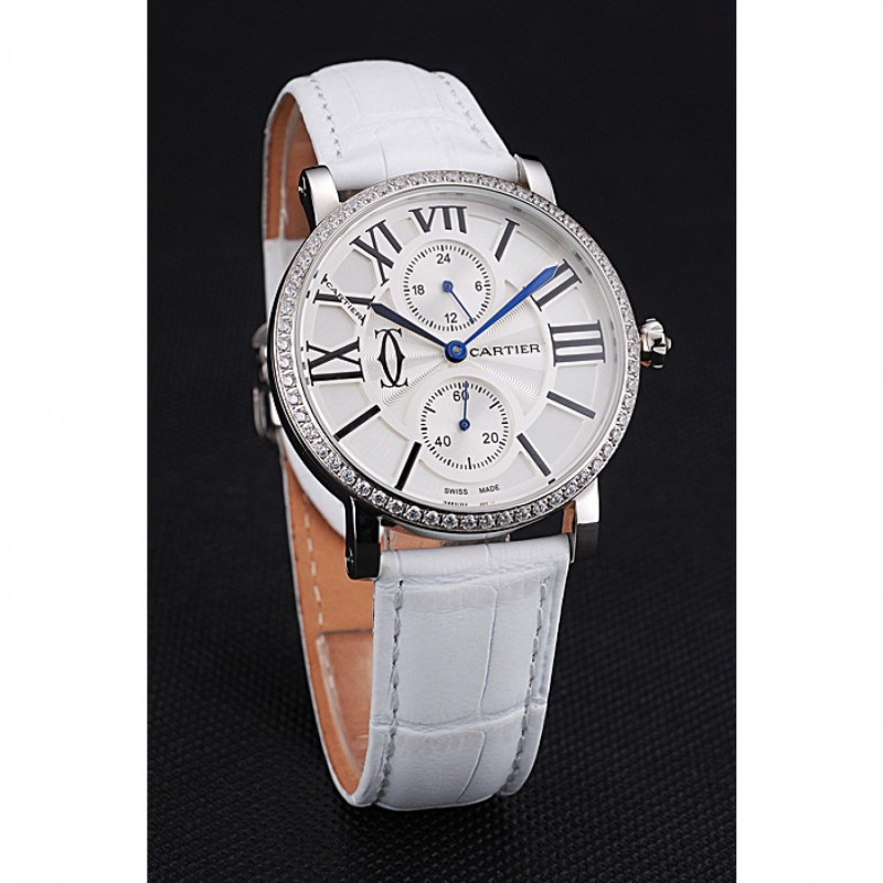 Sé el primero en valorar “Cartier Ronde Segunda zona horaria Esfera Blanca, caja de acero inoxidable con correa de cuero blanco 622803 Diamantes” Cancelar respuesta