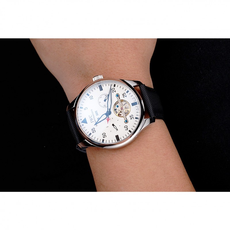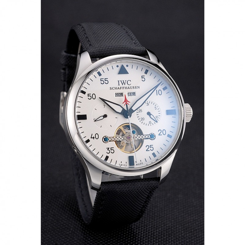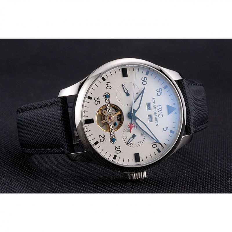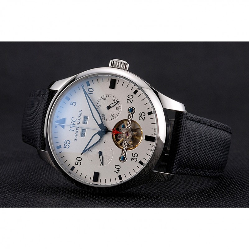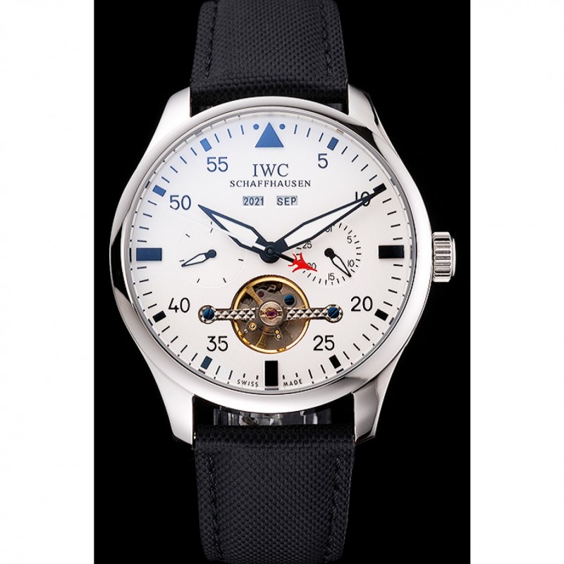 Inicio / IWC / CBI piloto Tourbillon esfera blanca Caja de acero inoxidable Correa de Tela Negro