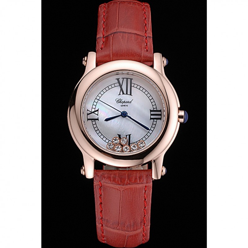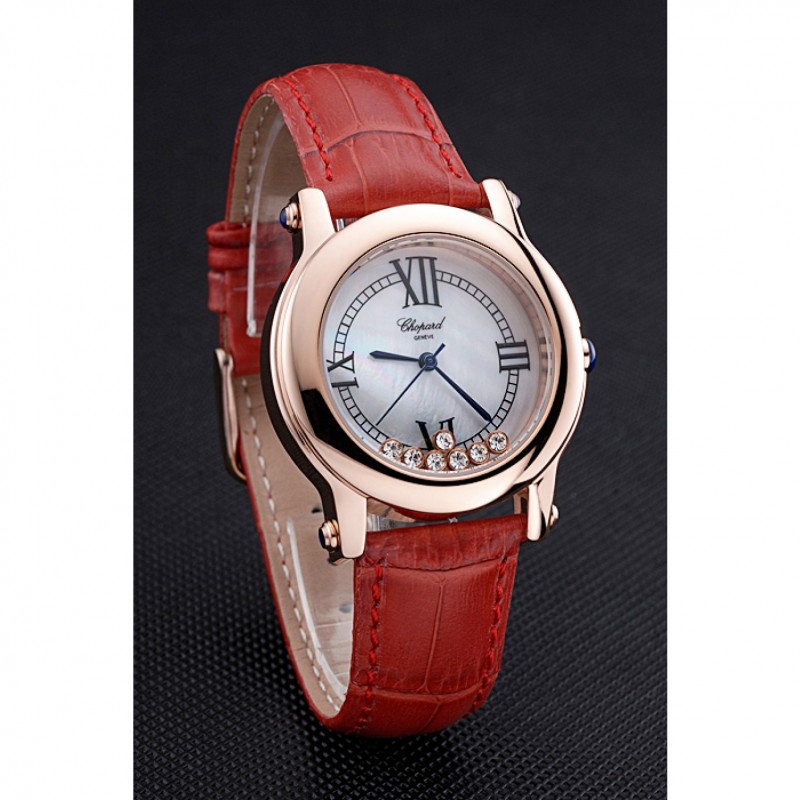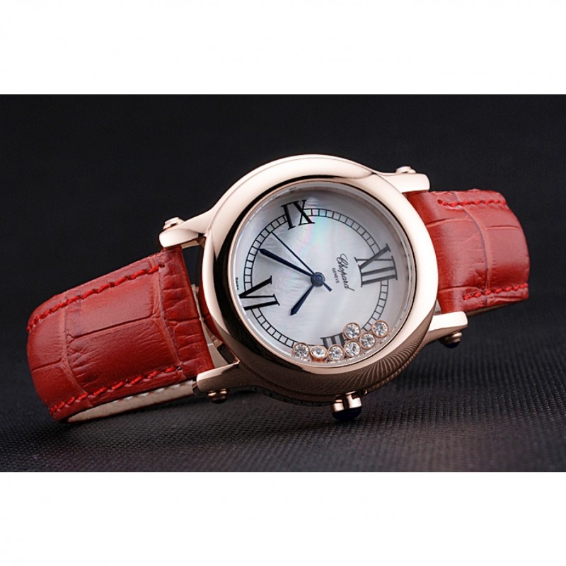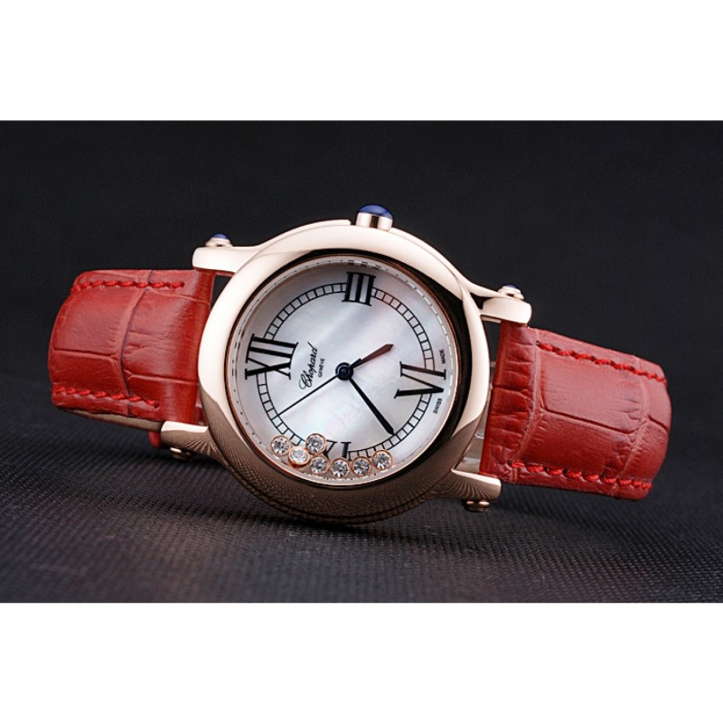 Descripción:. clásico y elegante sin ser estirado, esta réplica de reloj Chopard atado rojo con diamantes de imitación flotantes es perfecto