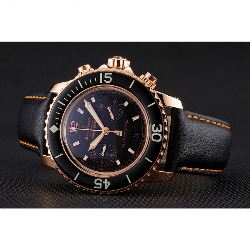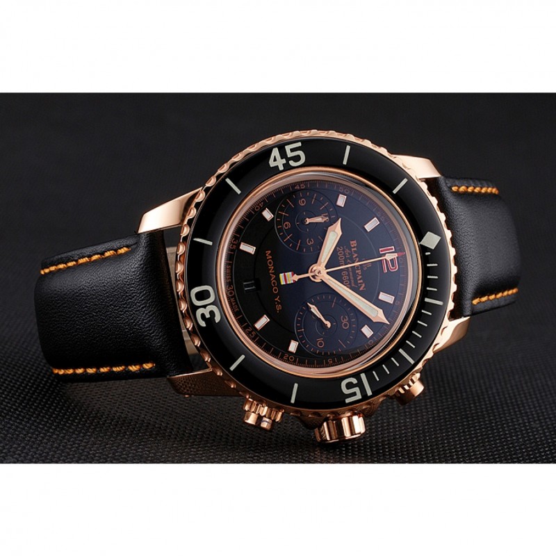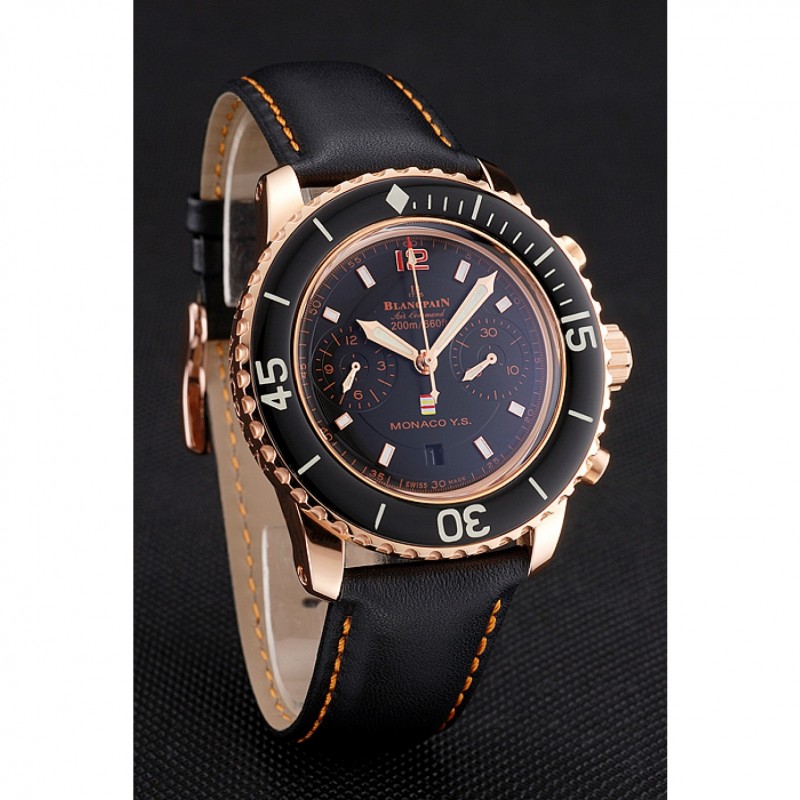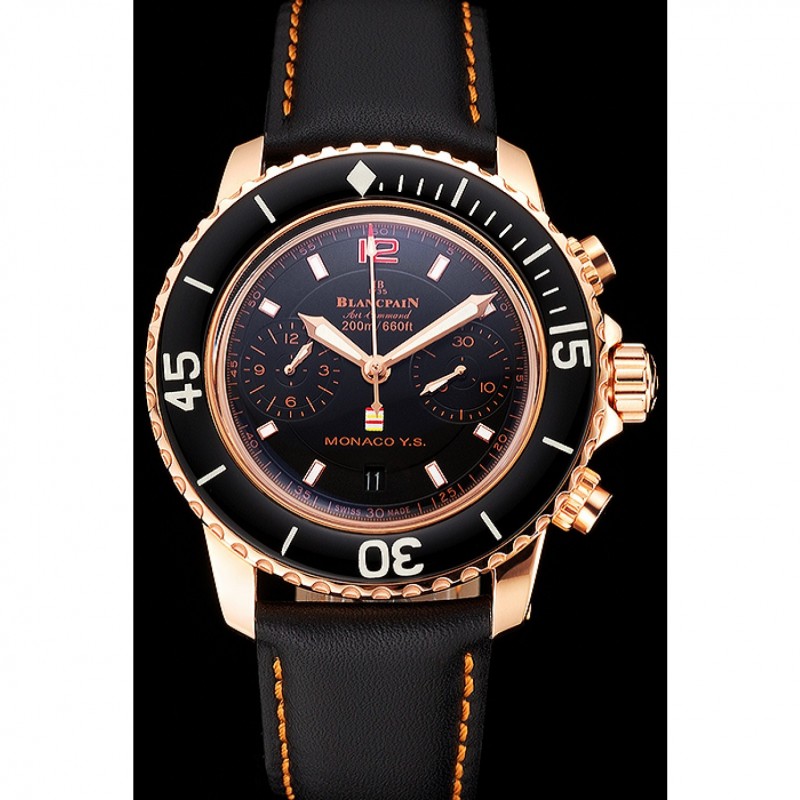 Inicio / Blancpain / Comando aéreo suizo Blancpain Mónaco YS Negro Dial correa de cuero de la caja de oro rosa Negro