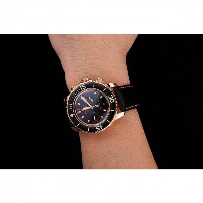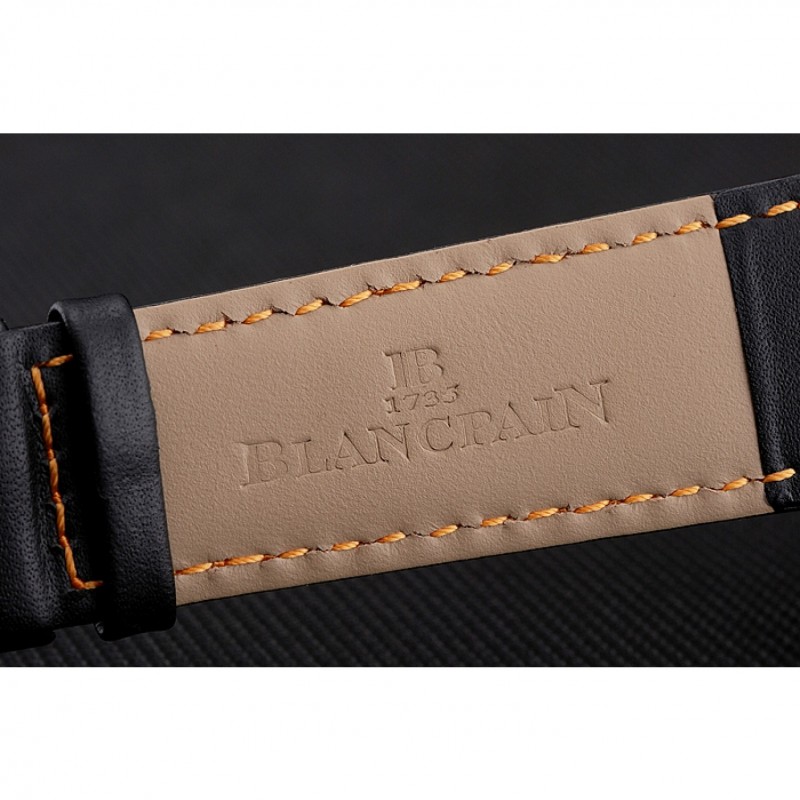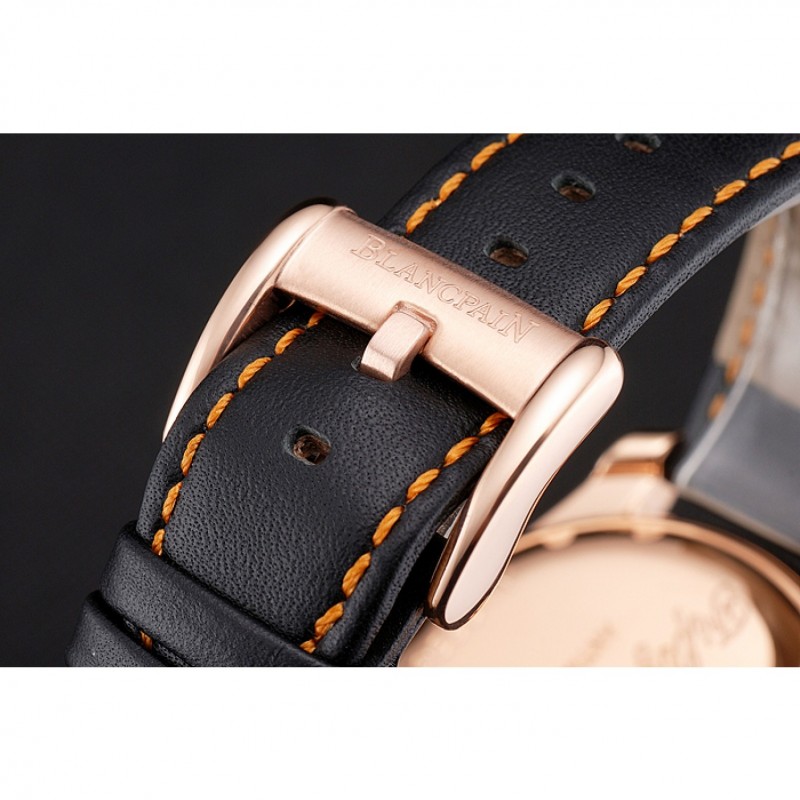 pulsera: Logo y correa de cuero Blancpain calor en relieve negro con costuras hilo naranja y Blancpain grabado 18K rose -oro chapado en gancho hebilla de cierre