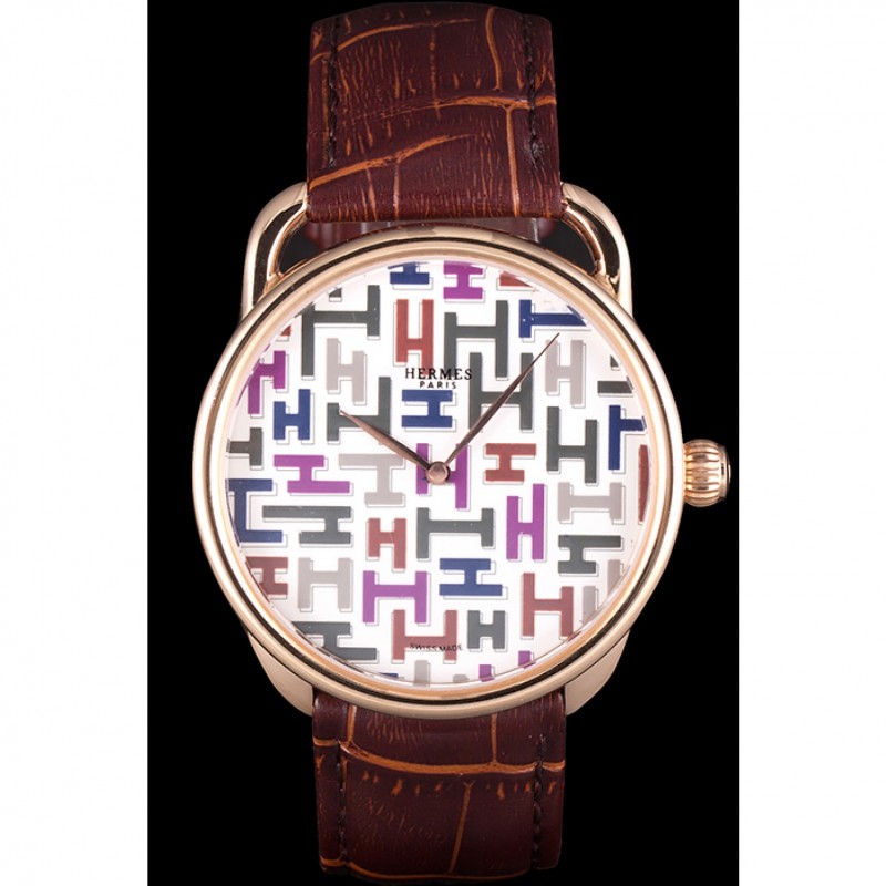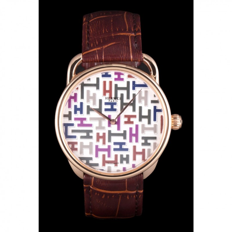 Correa multicolor con dibujos Hermes Croco clásico de cuero Logo Dial 801402