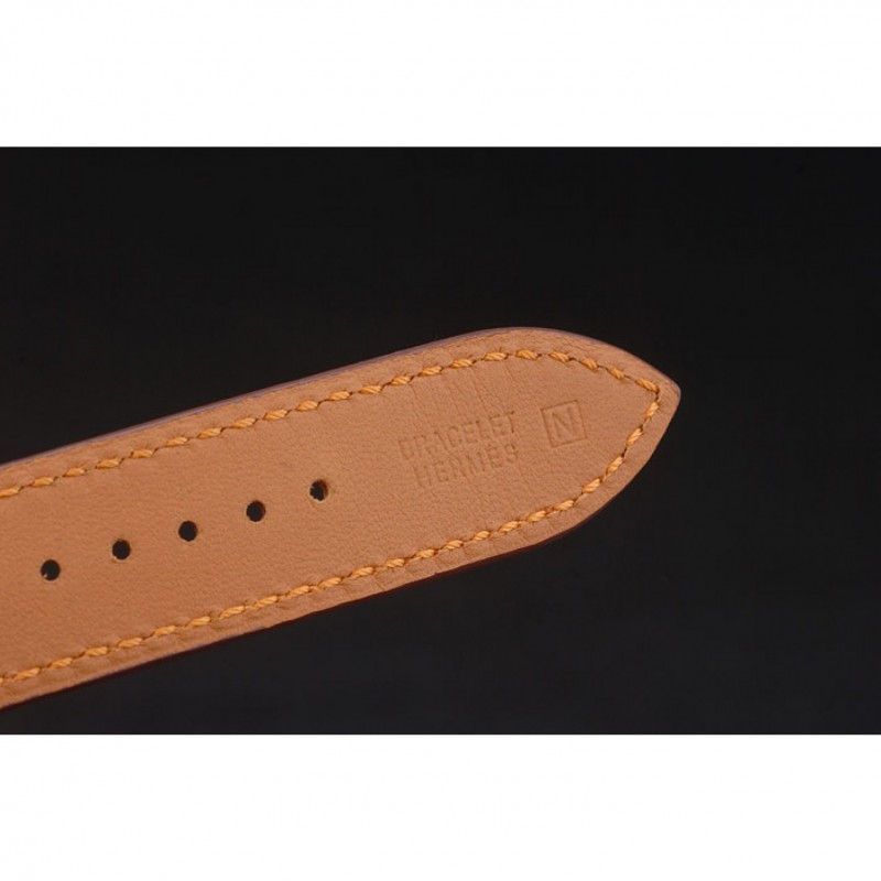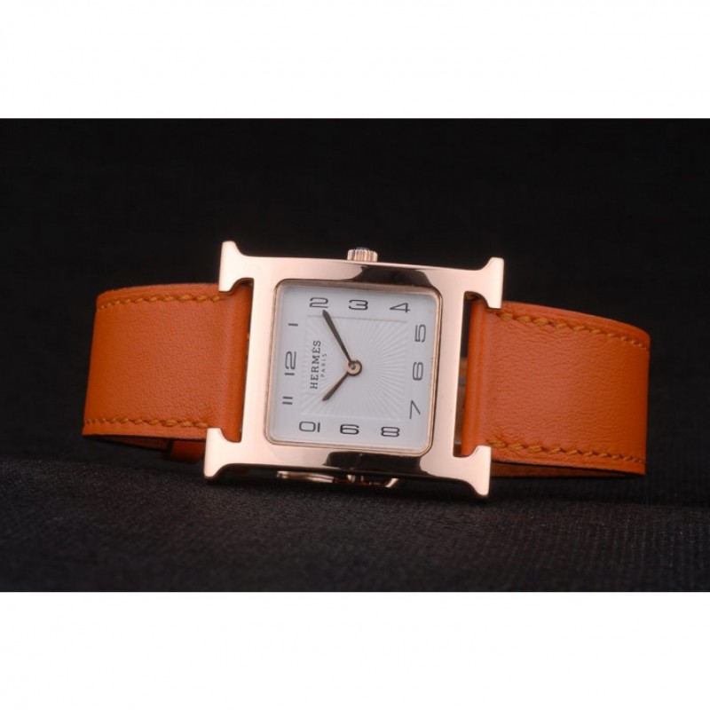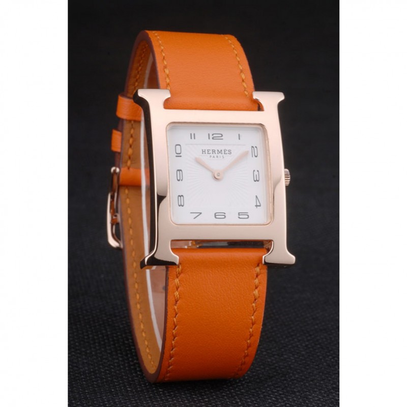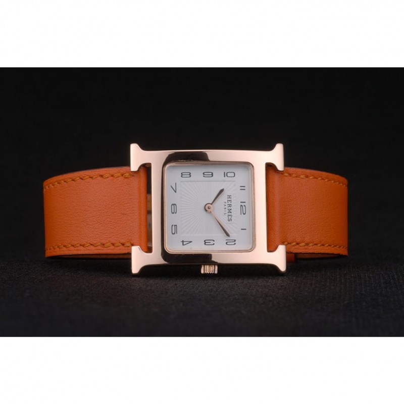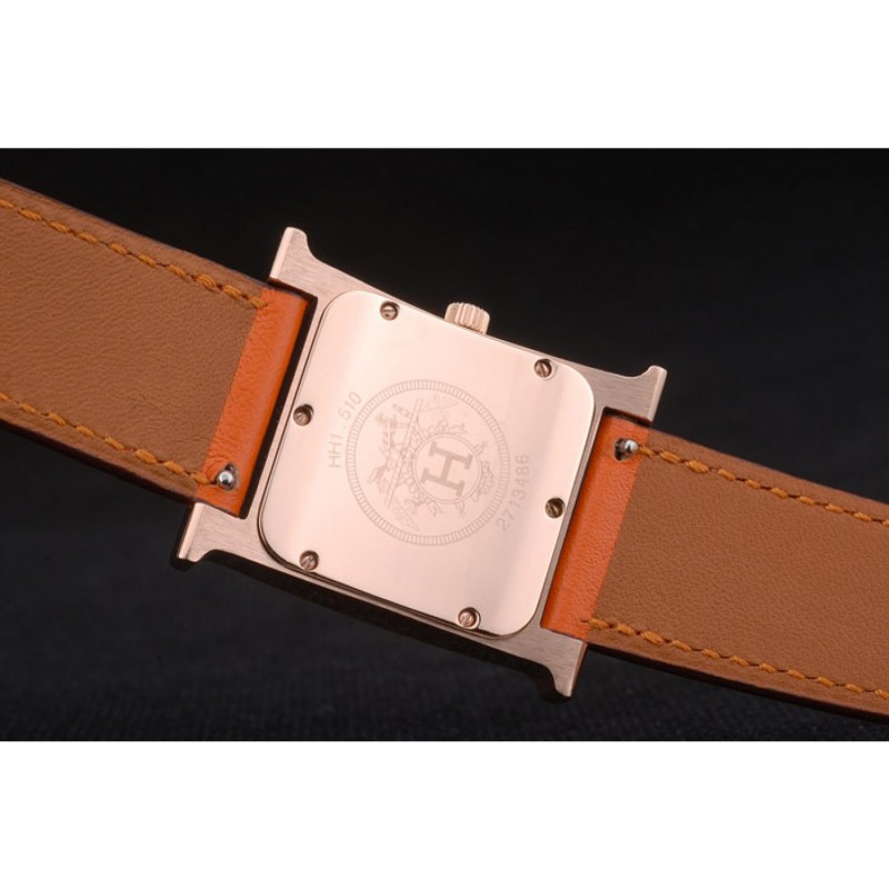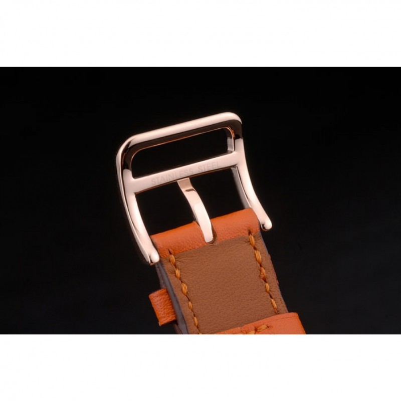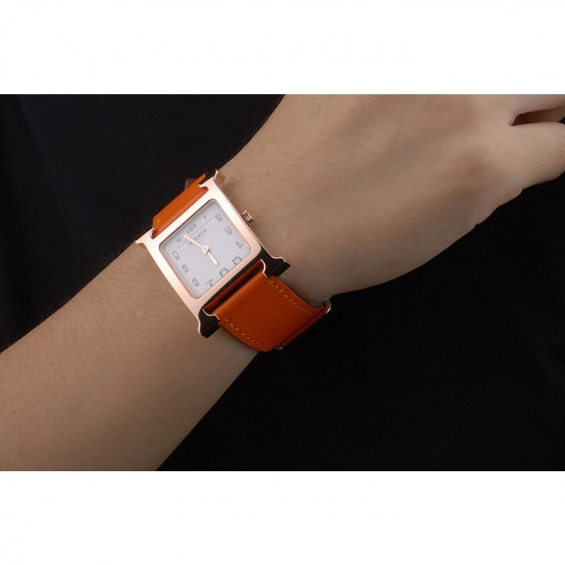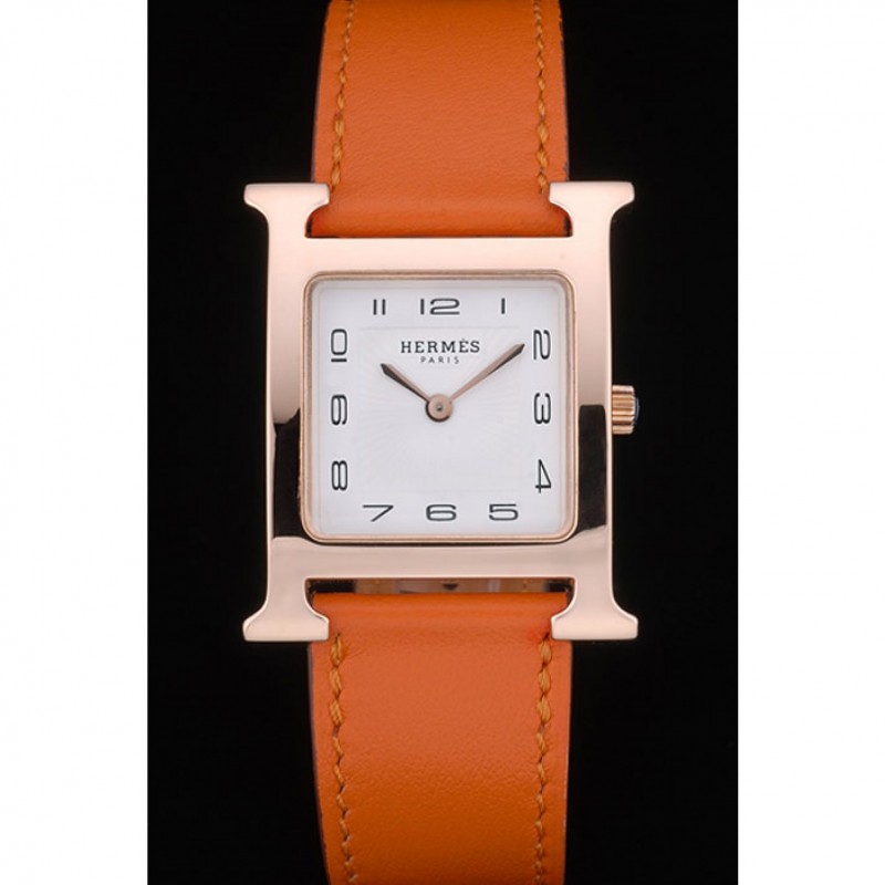 Cuero de Hermes Heure H de oro rosa Bisel Naranja Correa esfera blanca 80234