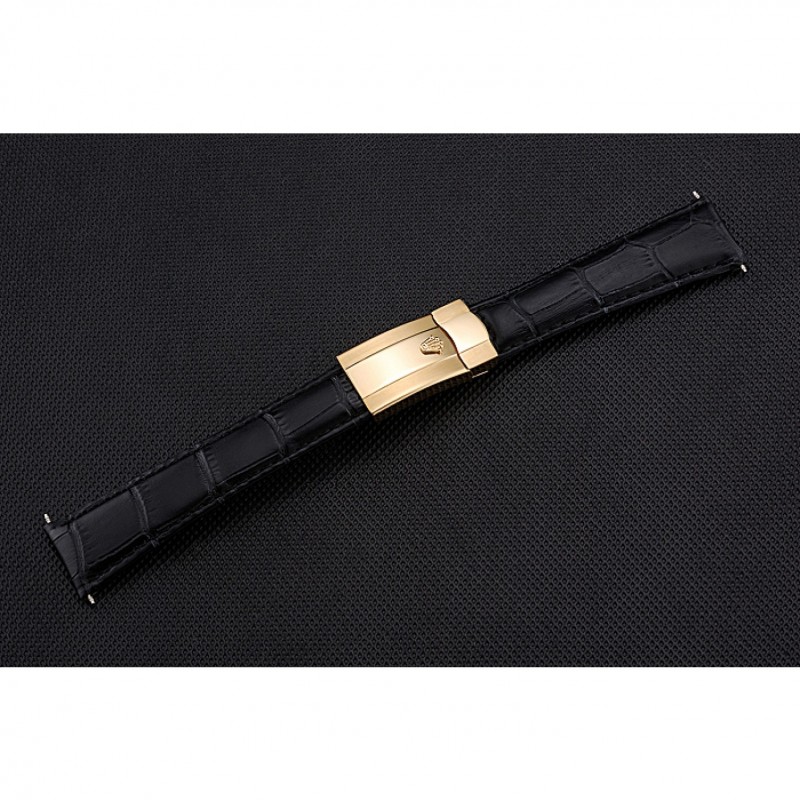 Cuero Negro Rolex de oro con pulsera de cierre 622496