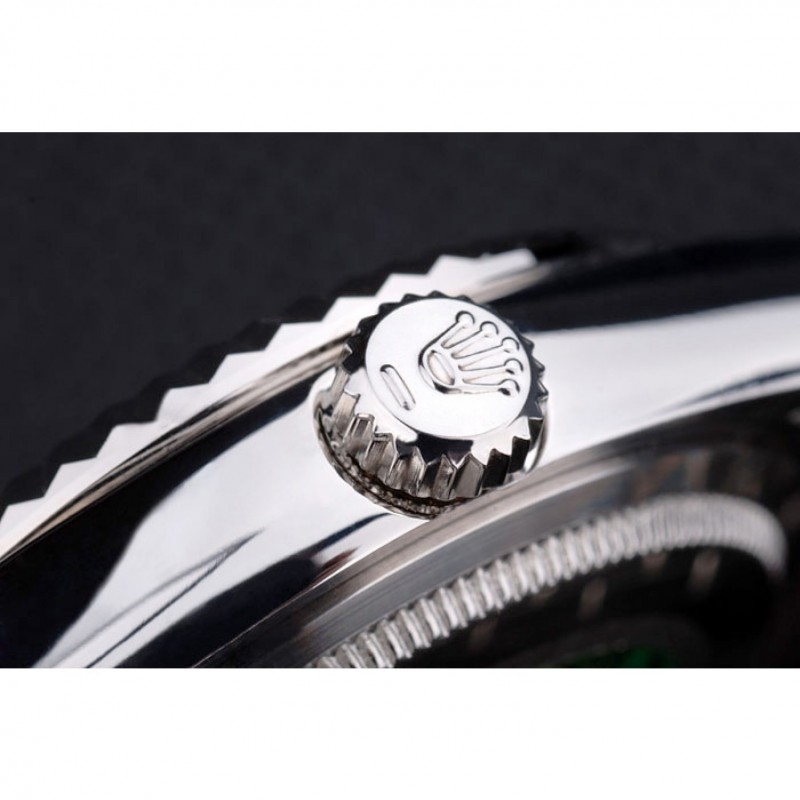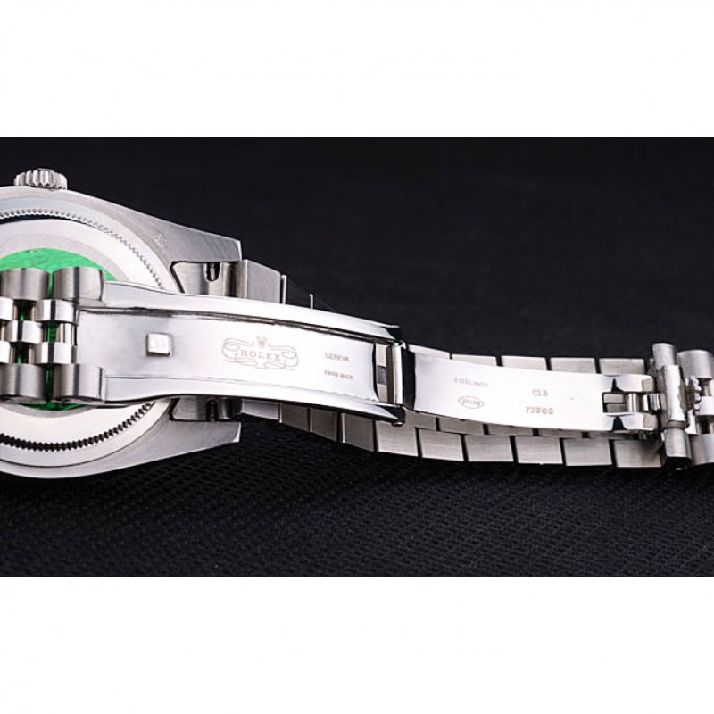 Volver: de acero inoxidable caso de empuje en la parte trasera con el logotipo verde sello Rolex
