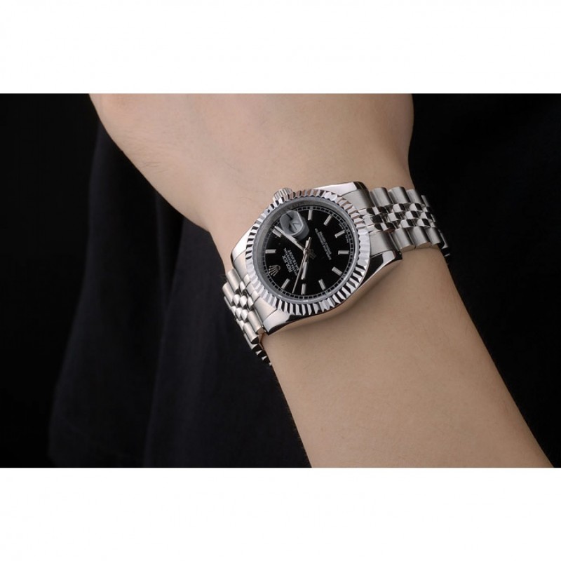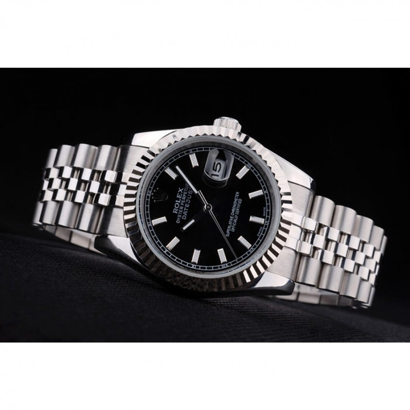 pulsera: cepillado y pulido brazalete de acero inoxidable con grabado Rolex cierre oculto que muestra el logotipo de Rolex