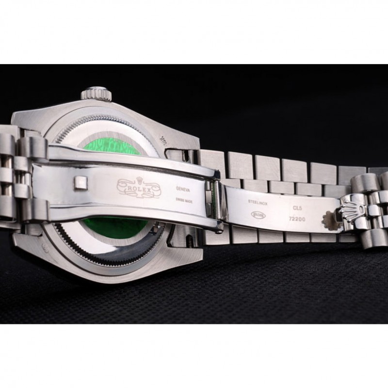Volver: de acero inoxidable de empuje en el caso de vuelta con el logotipo verde sello Rolex