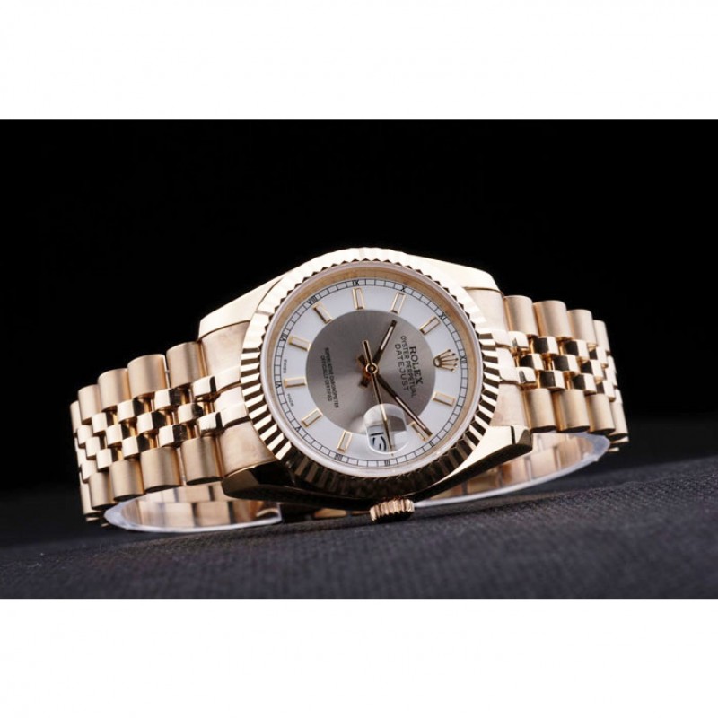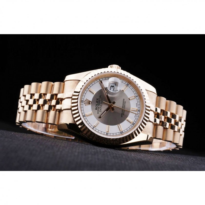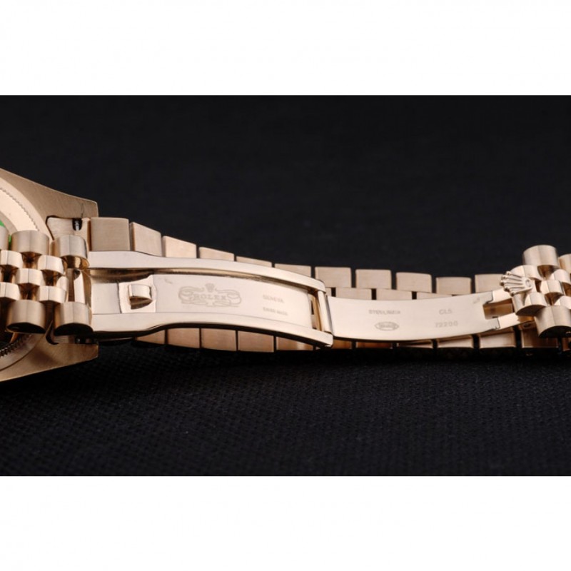 pulsera: 18k oro amarillo plateado brazalete de eslabones de acero inoxidable con grabado Rolex cierre oculto que muestra el logotipo de Rolex