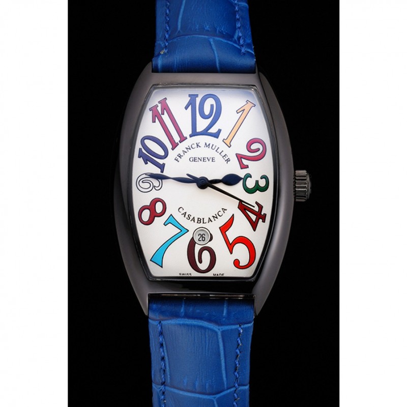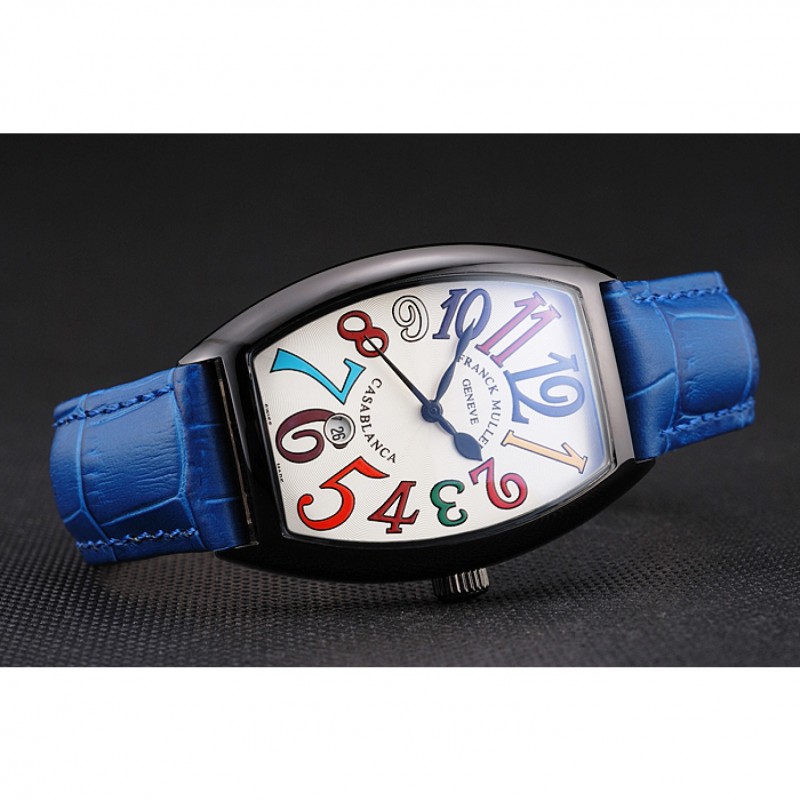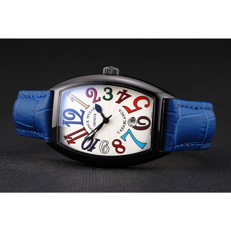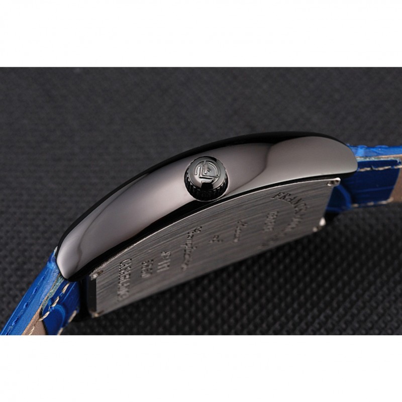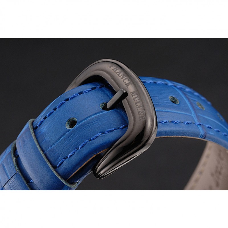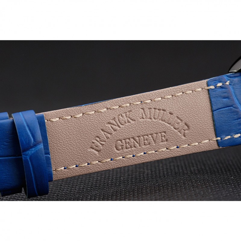 pulsera: calor Franck Muller Geneve en relieve cocodrilo azul correa de cuero con Franck Muller inscrito ion-plateado broche de gancho hebilla