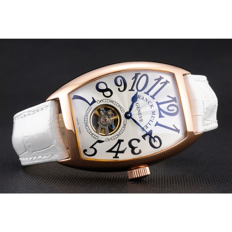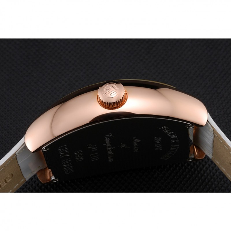 pulsera: calor Franck Muller Geneve correa de piel de cocodrilo blanco en relieve rosa de 18 quilates chapado en oro gancho hebilla de cierre
