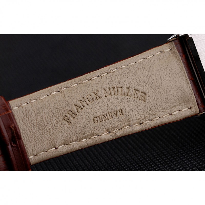 pulsera: correa de piel de cocodrilo marrón calor Franck Muller Geneve en relieve con un Franck Muller grabado de acero inoxidable pulido de gancho hebilla de cierre