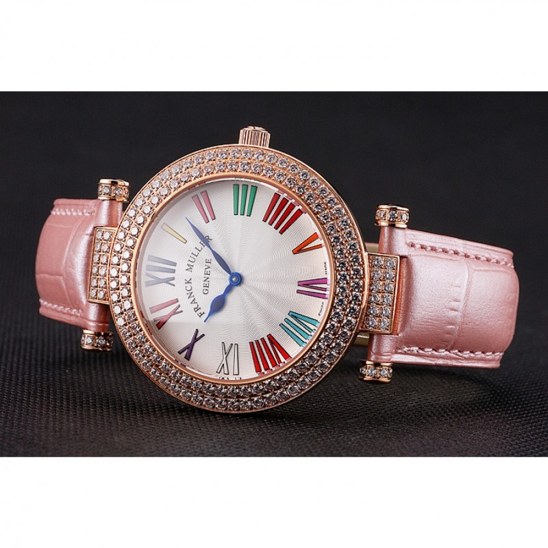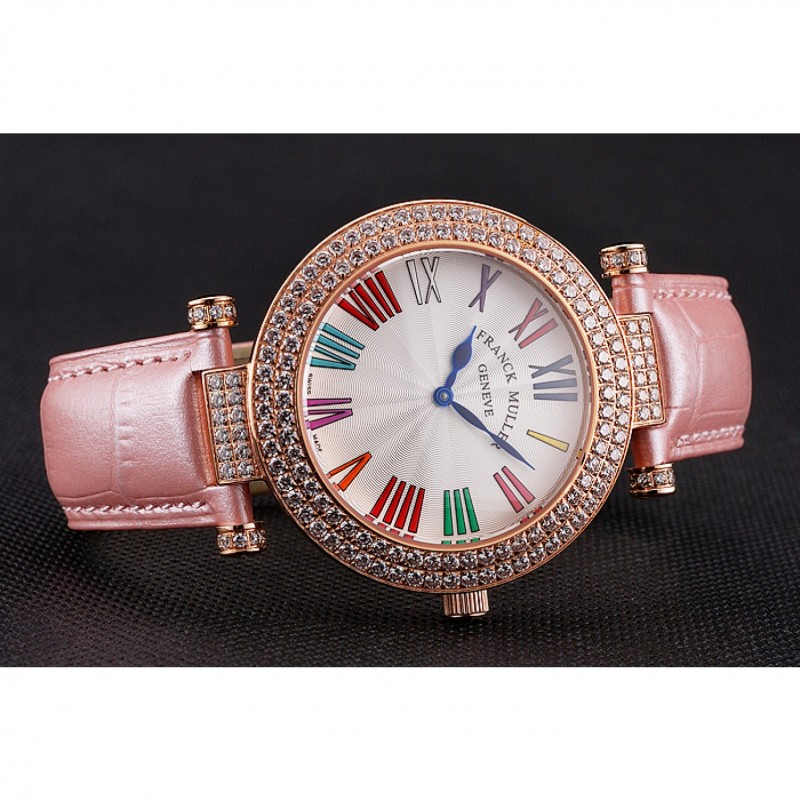 pulsera:correa de cuero de color rosa cocodrilocalor Franck Muller Geneve en relieve con el diamante 18k incrustaciones rosa-chapado en oro de gancho hebilla de cierre