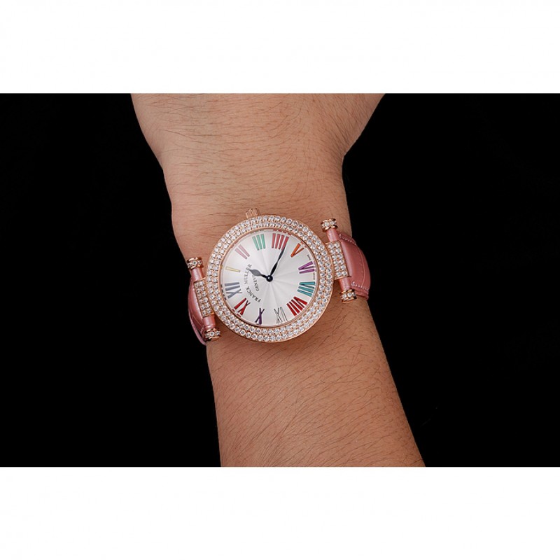 Inicio / Franck Muller / Franck Muller doble misterio Ronde Blanco Dial correa de cuero rosa caja rosa clara de Oro