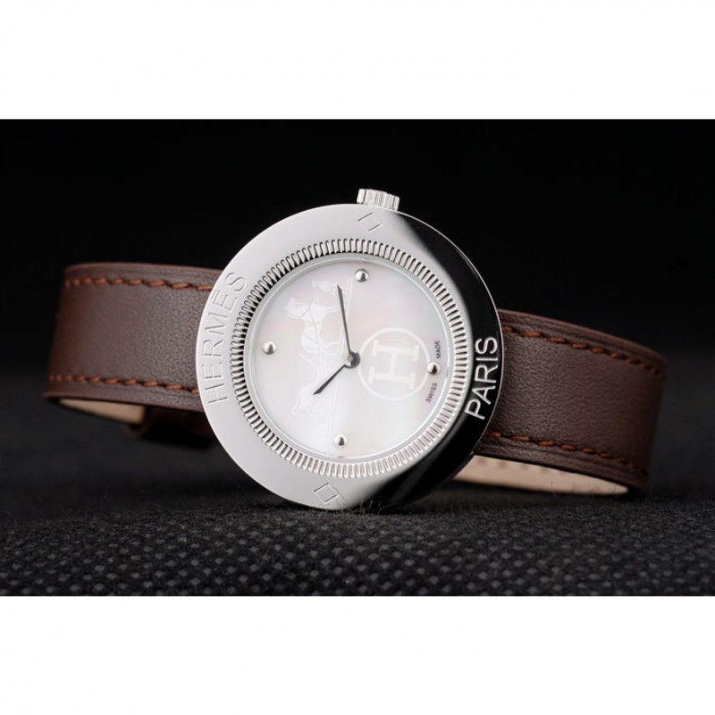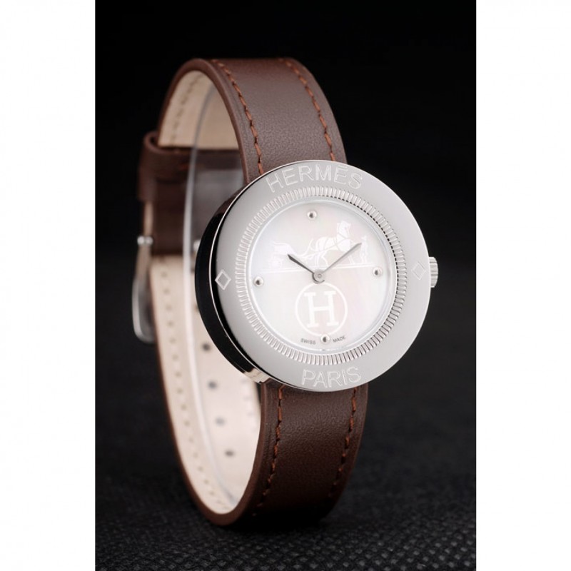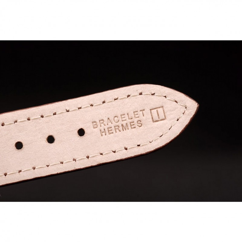 pulsera: correa de cuero marrón con relieve calor sello pulsera Hermes y Hermes grabado de acero inoxidable pulido de gancho hebilla de cierre