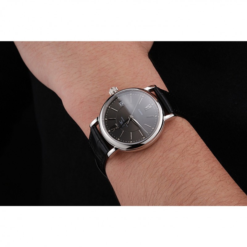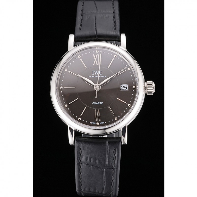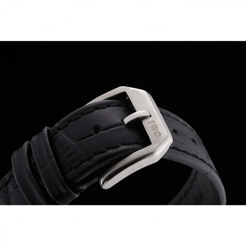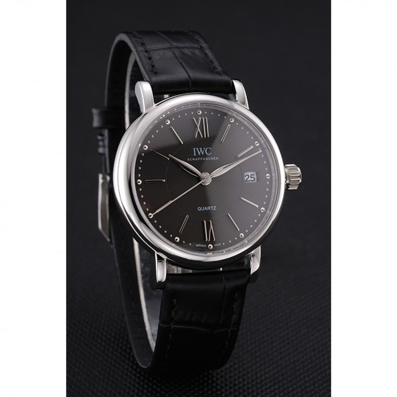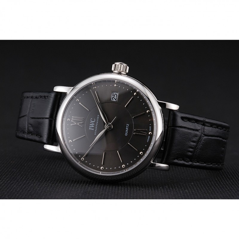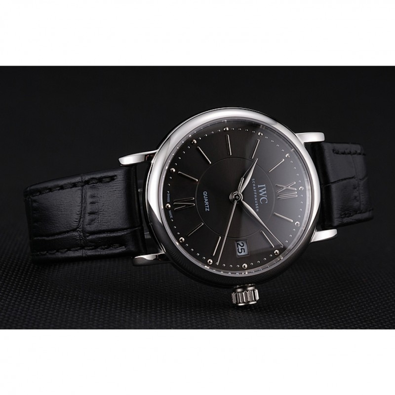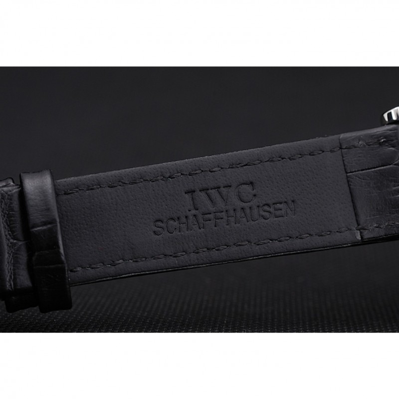 pulsera: correa de piel de cocodrilo negro en relieve calor IWC Schafehausen con CBI grabado de acero inoxidable pulido de gancho hebilla de cierre