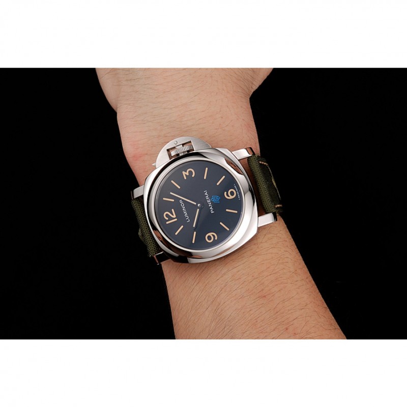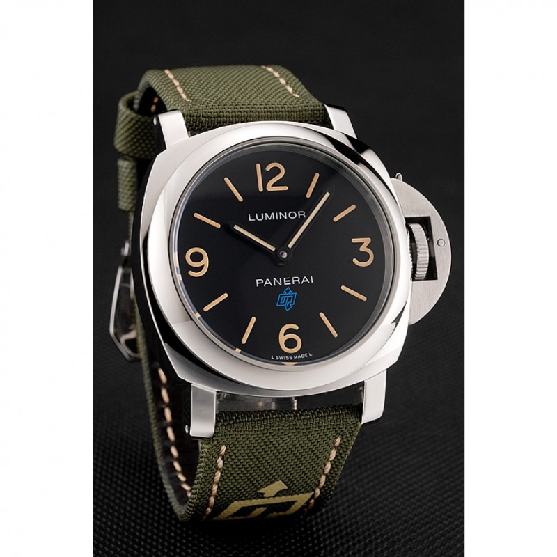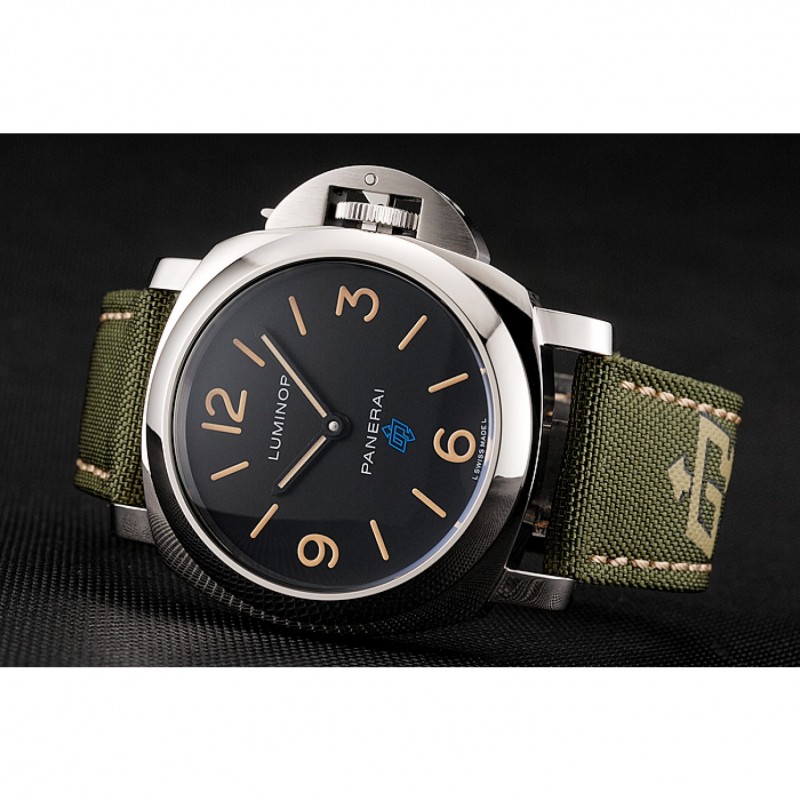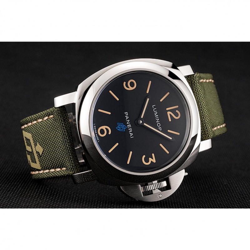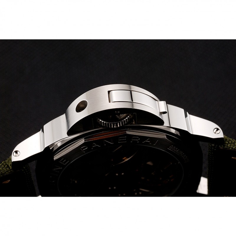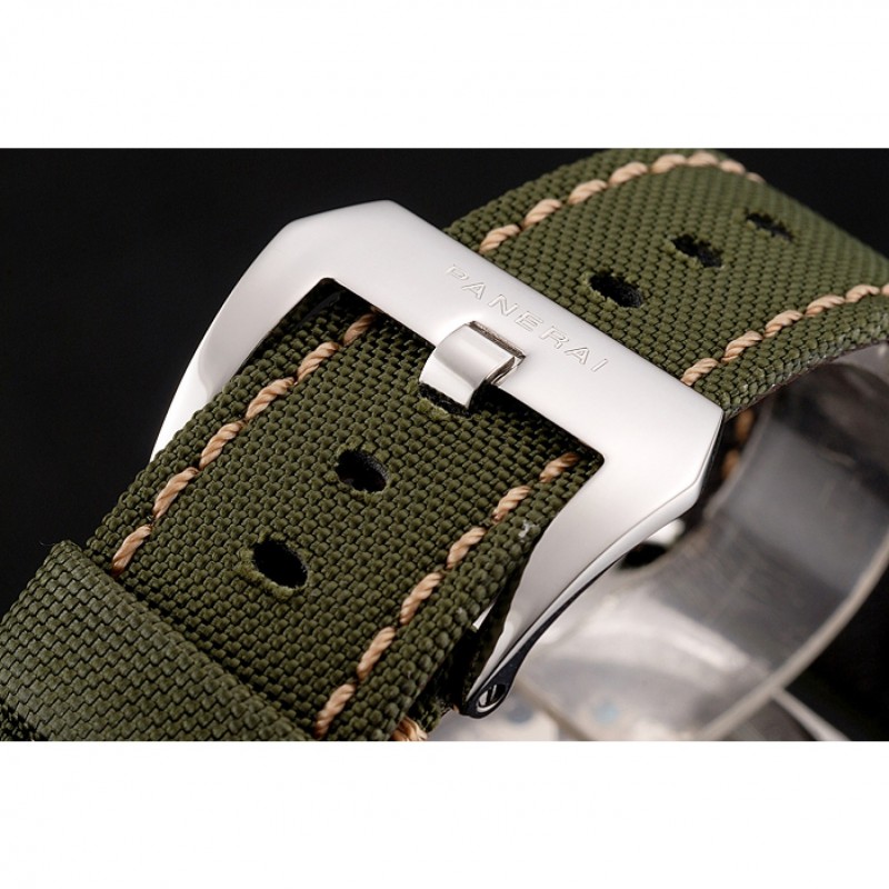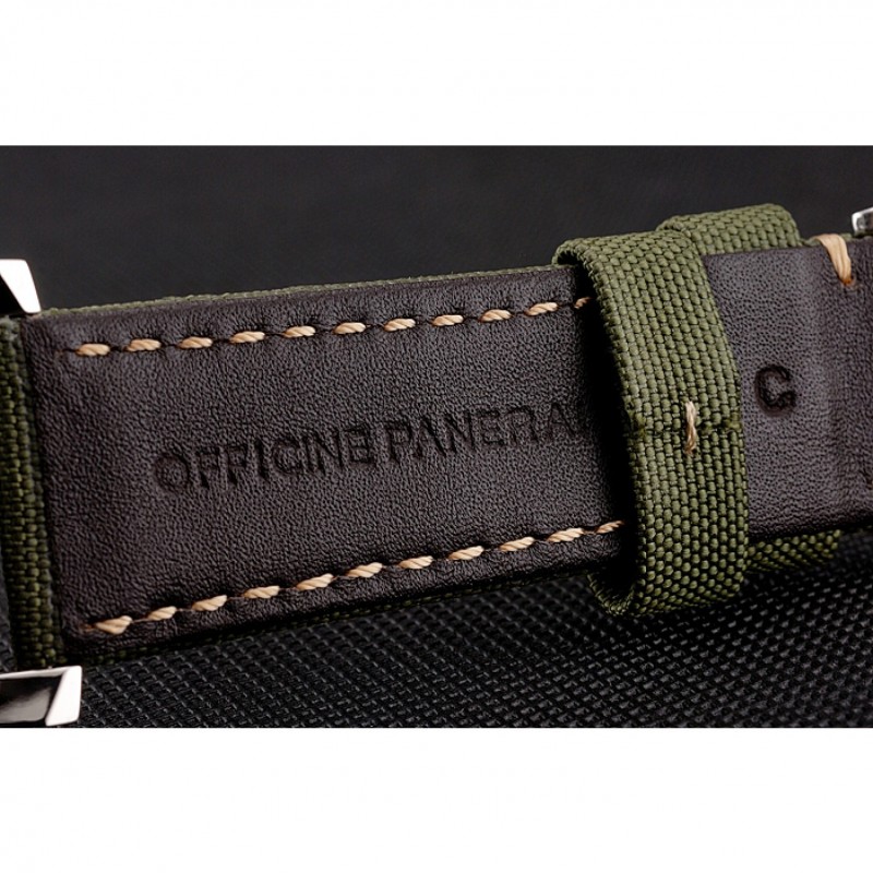 pulsera: calor Officine Panerai tela verde en relieve correa con costuras de hilo beige y Panerai grabado de acero inoxidable pulido de gancho hebilla de cierre