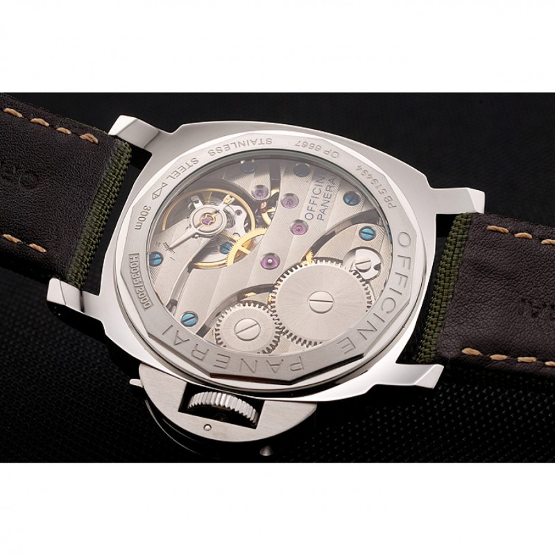 Volver: de acero inoxidable cepillado complemento de vuelta con Panerai Officine grabado transparente mecánica revelador ventana