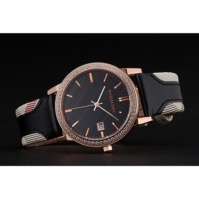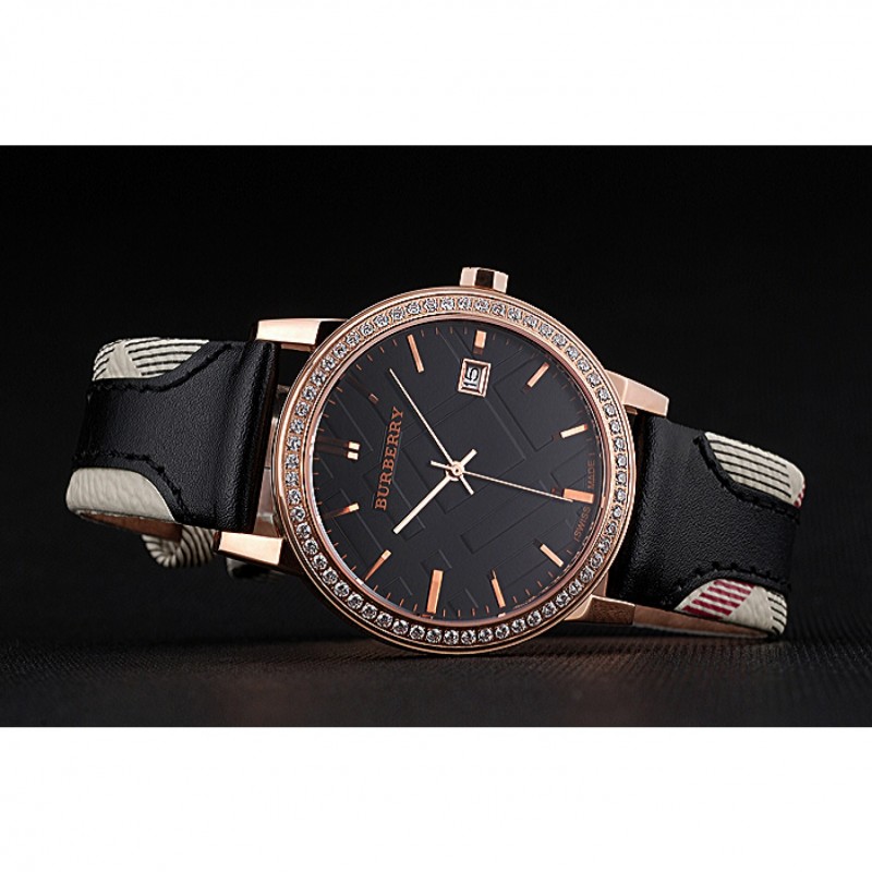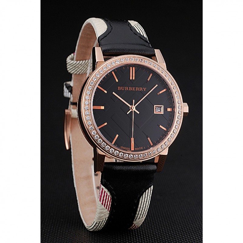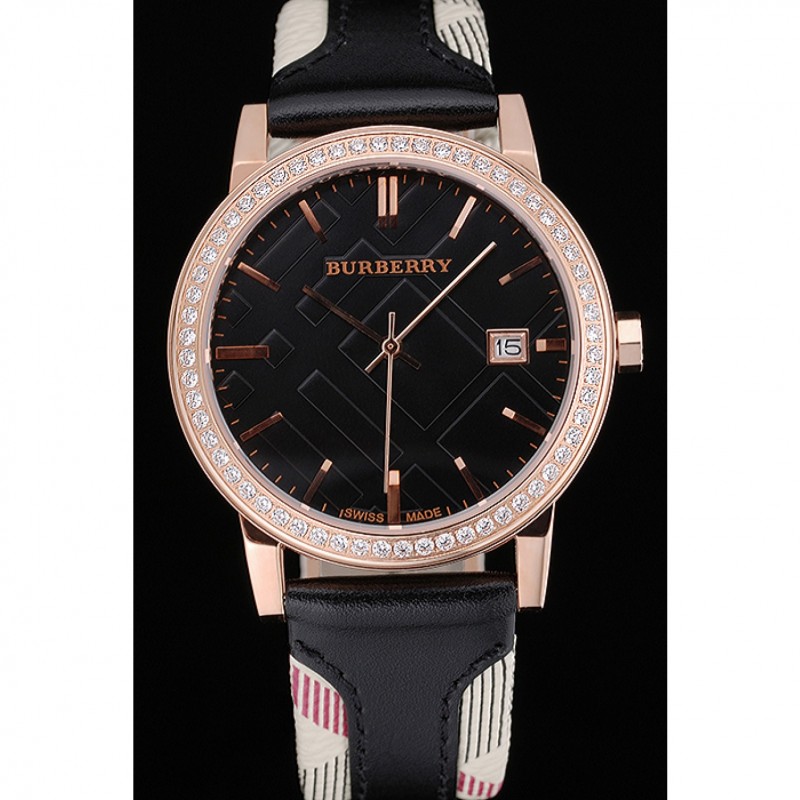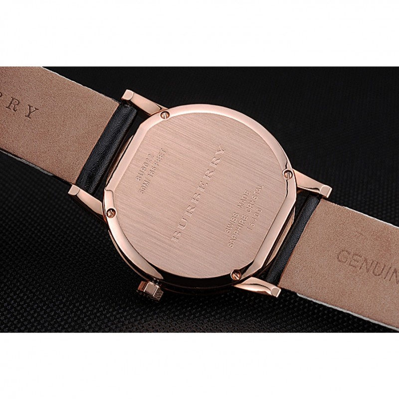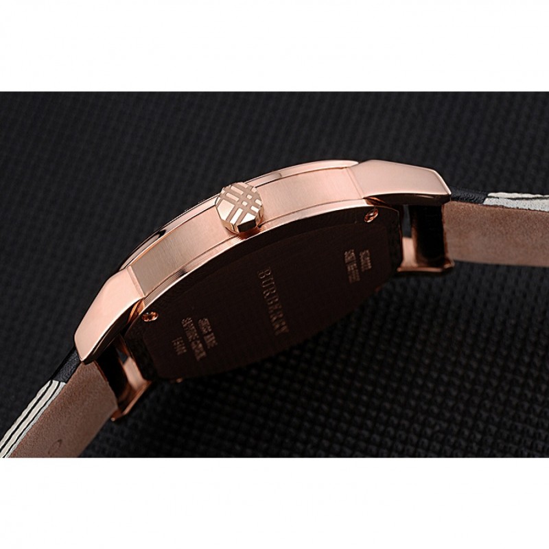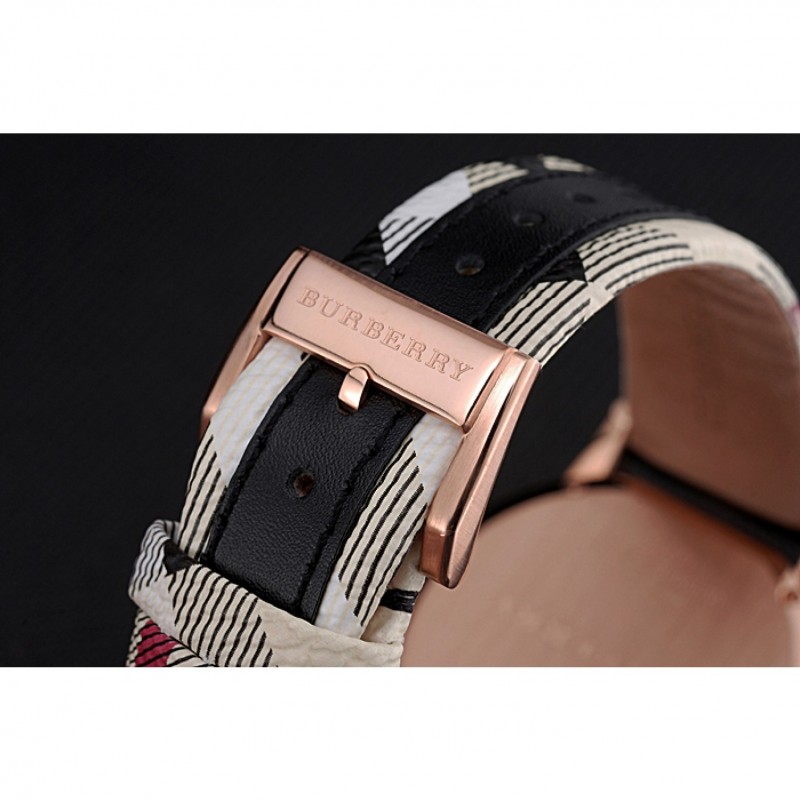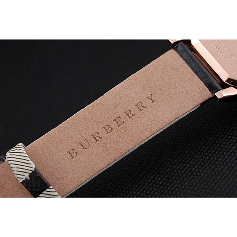 pulsera: correa de cuero negro de Burberry de calor en relieve con Burberry cuero de la impresión a cuadros recortar a lo largo de los bordes y Burberry grabado rosa de 18 quilates chapado en oro gancho hebilla de cierre