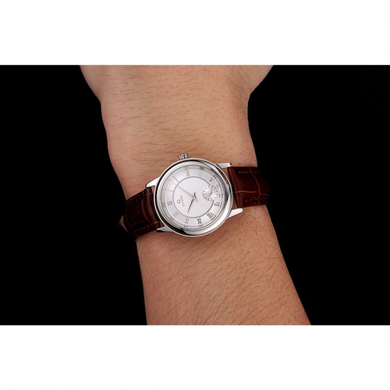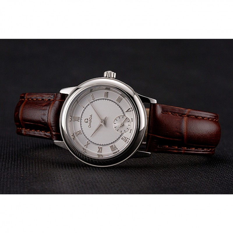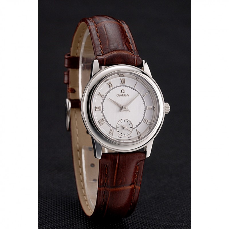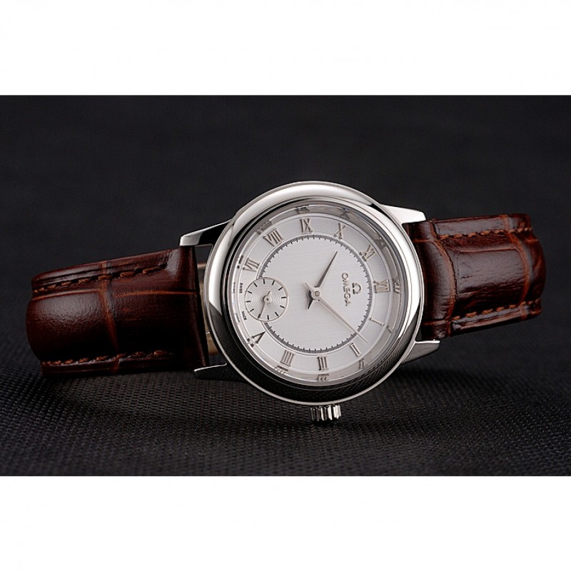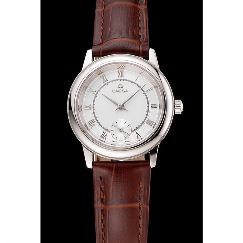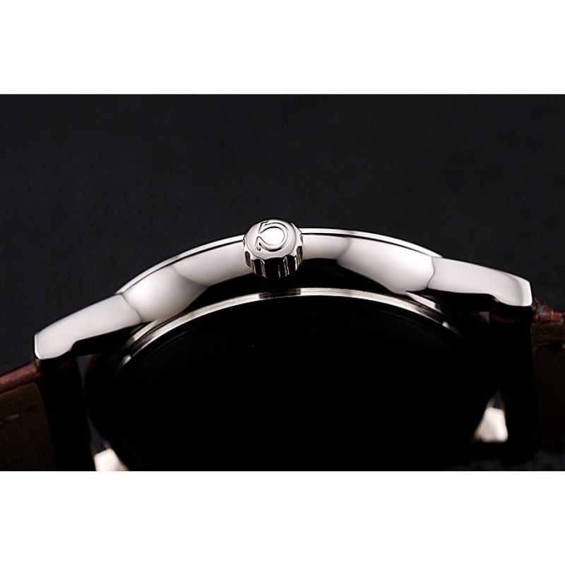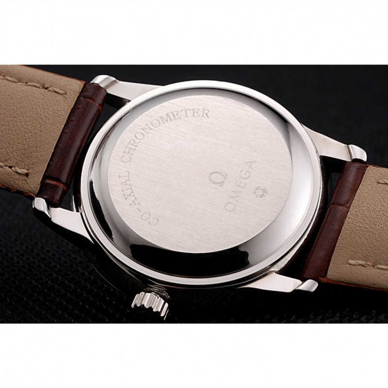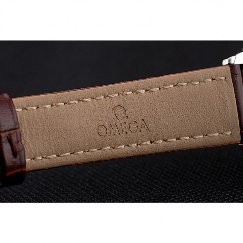 pulsera: correa de piel de cocodrilo marrón Omega y el logotipo en relieve de calor con el logotipo de Omega tallada de acero inoxidable pulido gancho hebilla de cierre