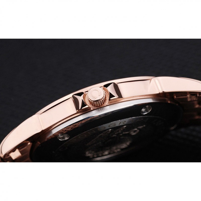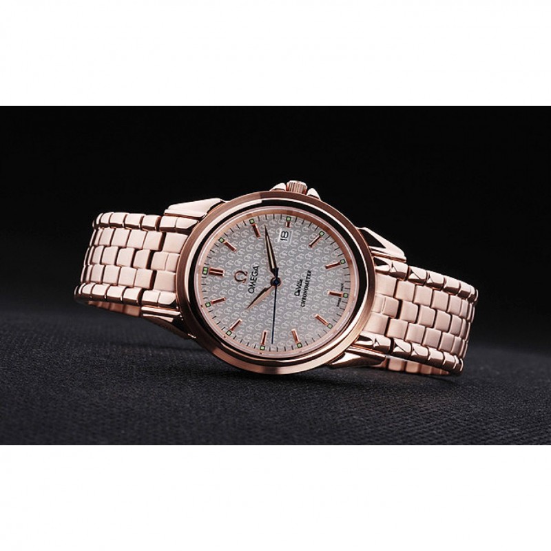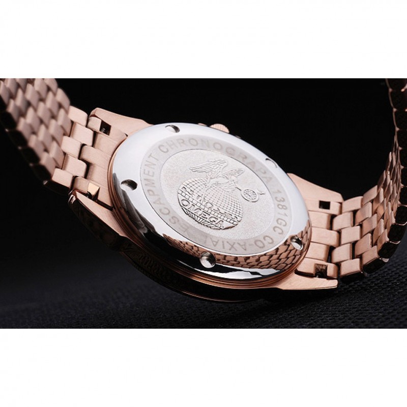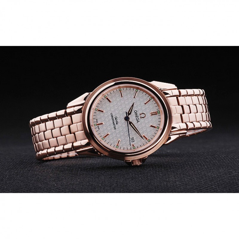 corona: corona calado de oro rosa con el logotipo de Omega