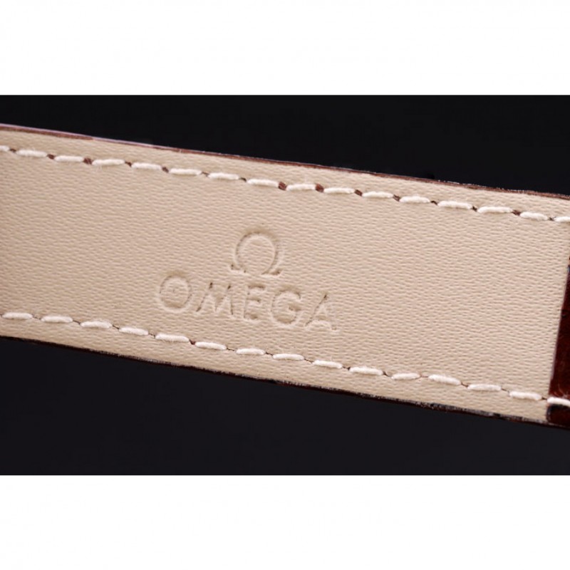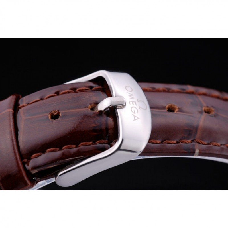 pulsera: correa de piel de cocodrilo calor Omega en relieve patente marrón con Omega inscrito de acero inoxidable pulido de gancho hebilla de cierre
