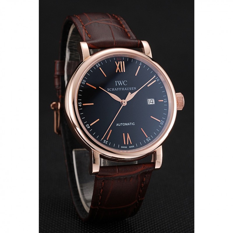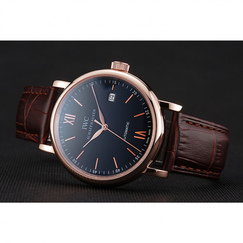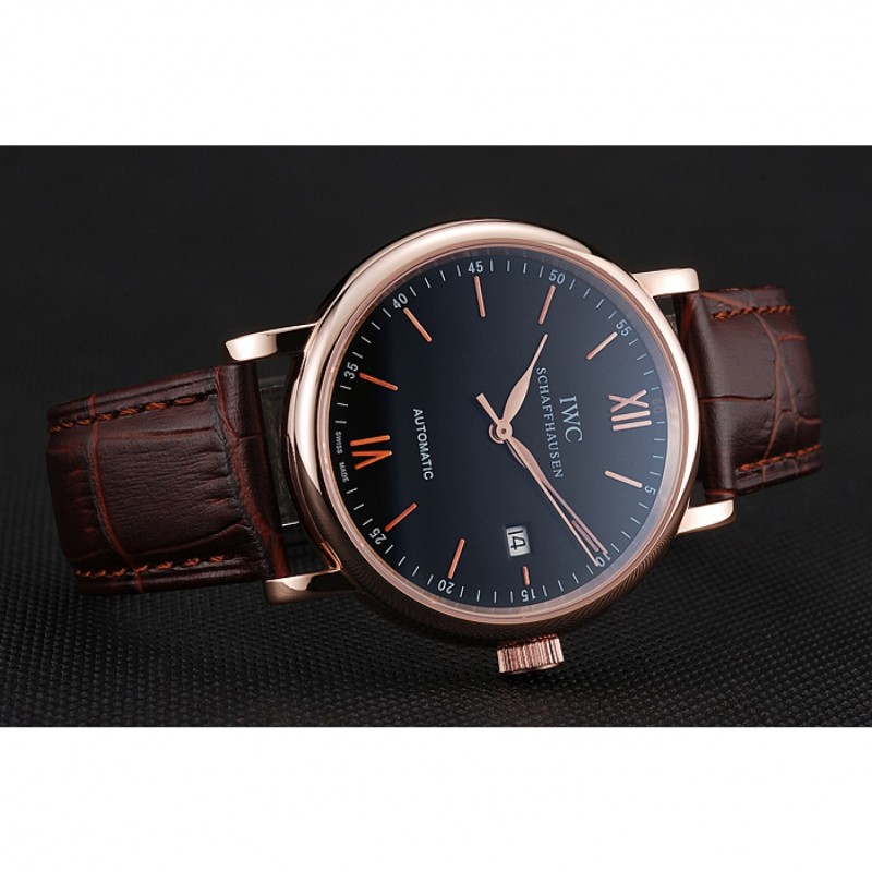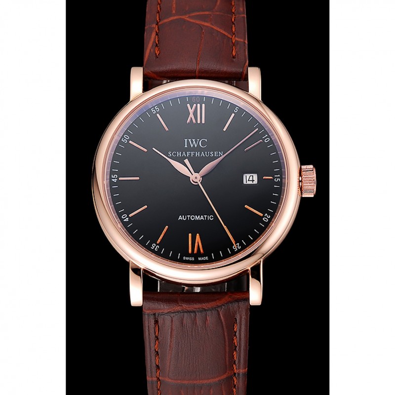 Inicio / IWC / Oro suizo IWC Portofino Caso Negro Dial de cuero marrón pulsera 622669