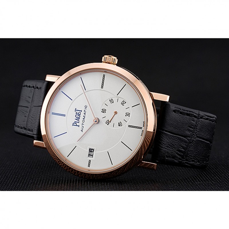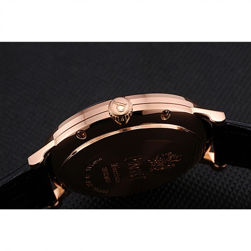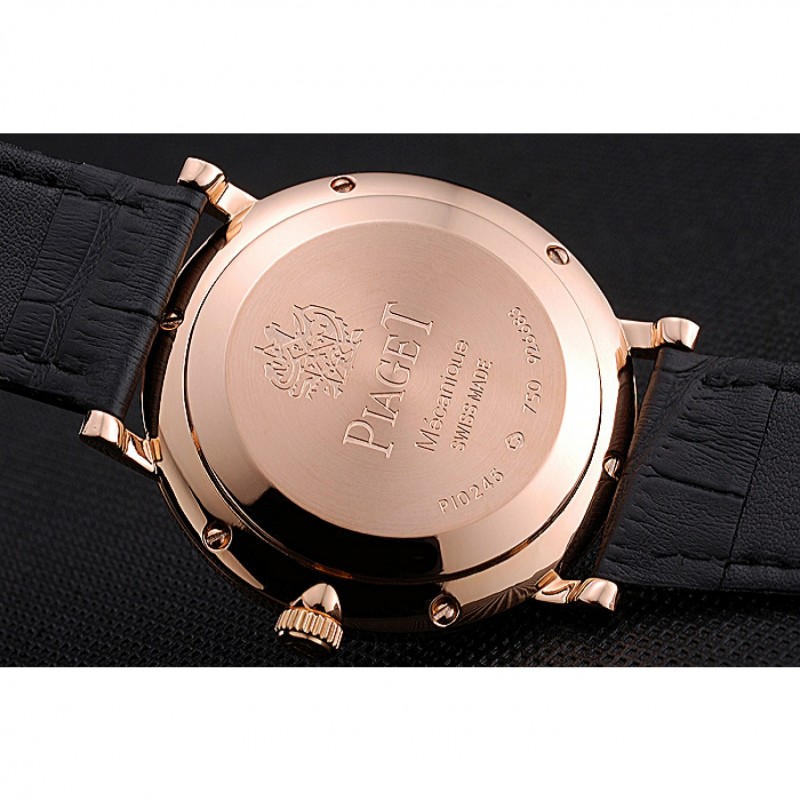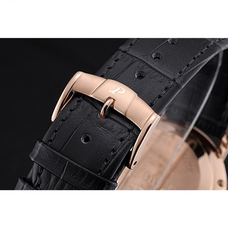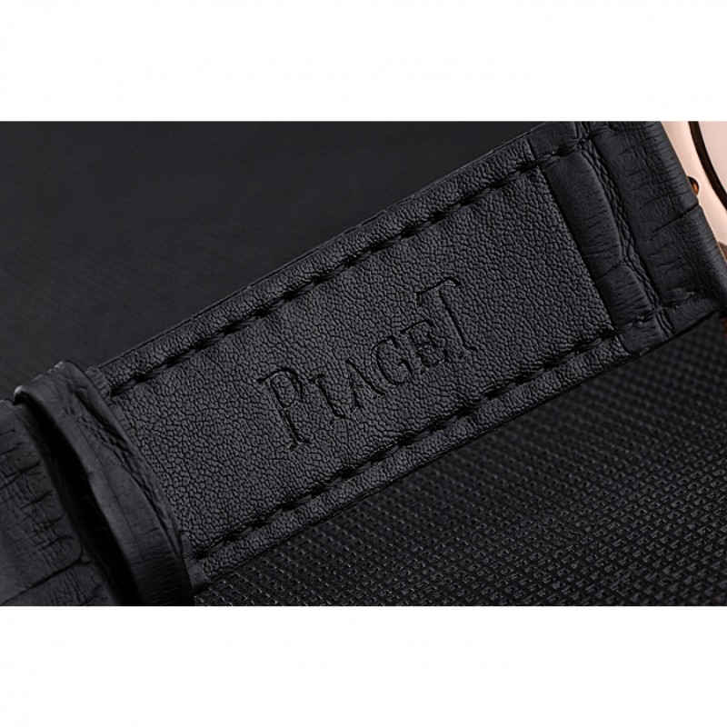 pulsera: correa de piel de cocodrilo negro de calor Piaget en relieve con Piaget logotipo de 18k grabado de oro rosa plateado broche de gancho hebilla