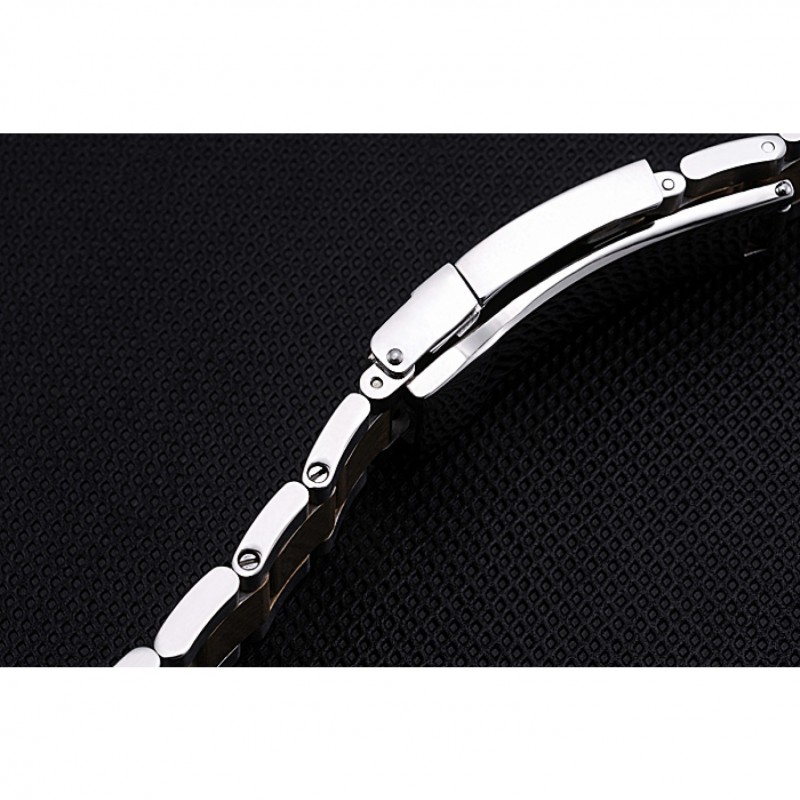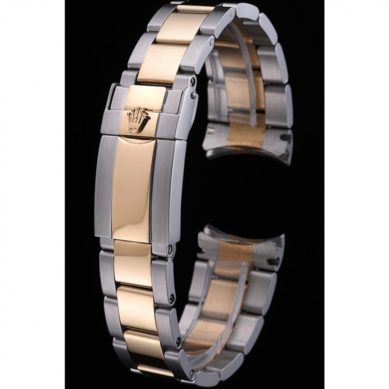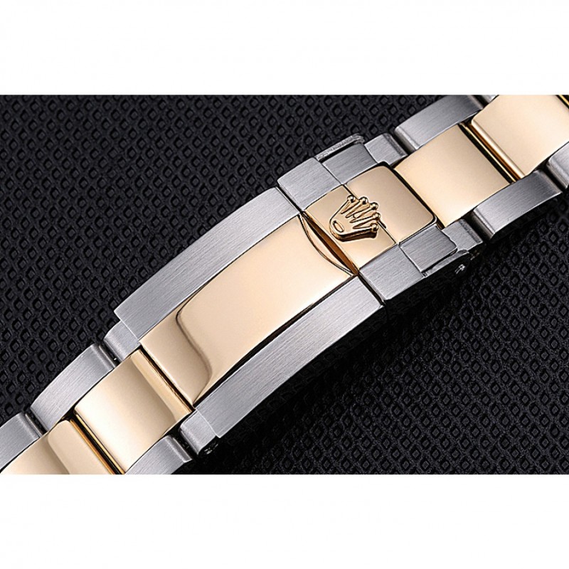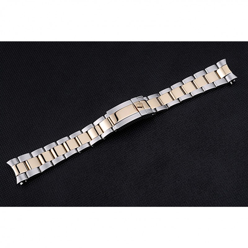 Pulsera: rosa de 18 quilates chapado en oro y cepillado pulsera de eslabones de acero inoxidable con cutwork hebilla de despliegue logotipo de Rolex