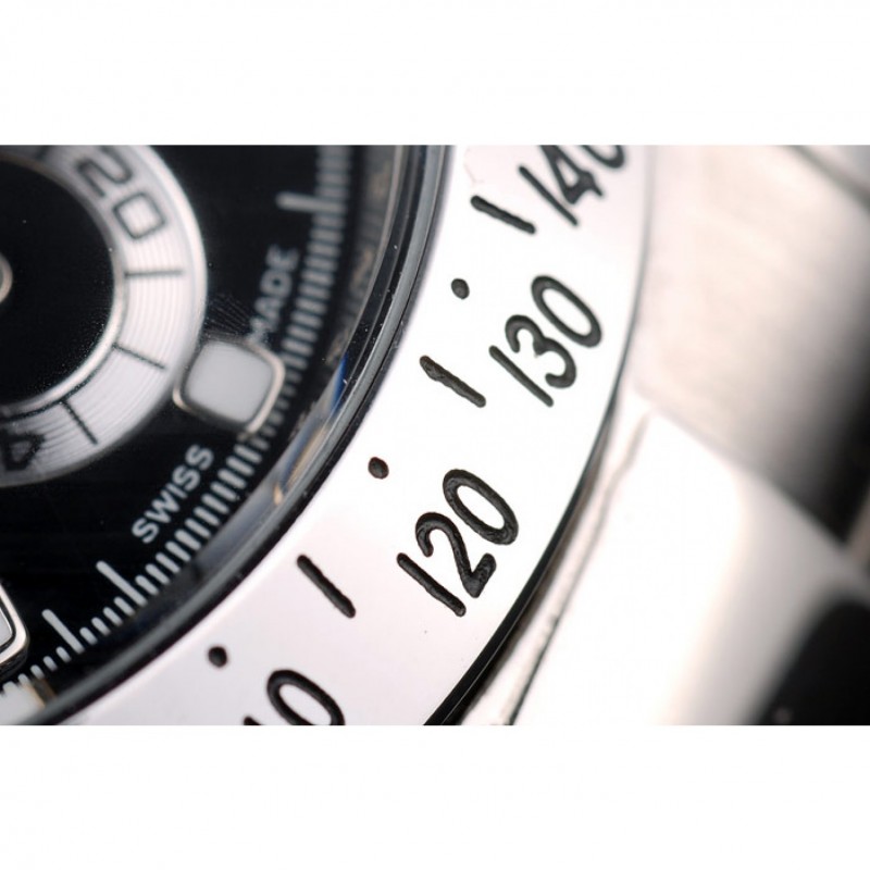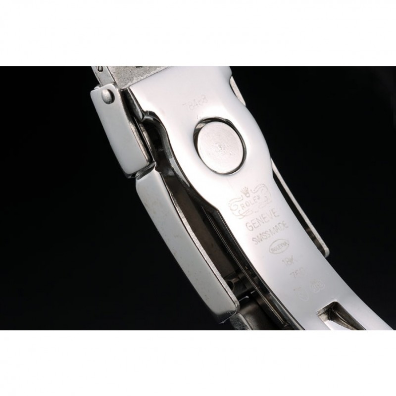 Crown: pulido corona calado de acero inoxidable con el logotipo de Rolex y dos botones coronas cutwork empuje más pequeños a cada lado de la misma