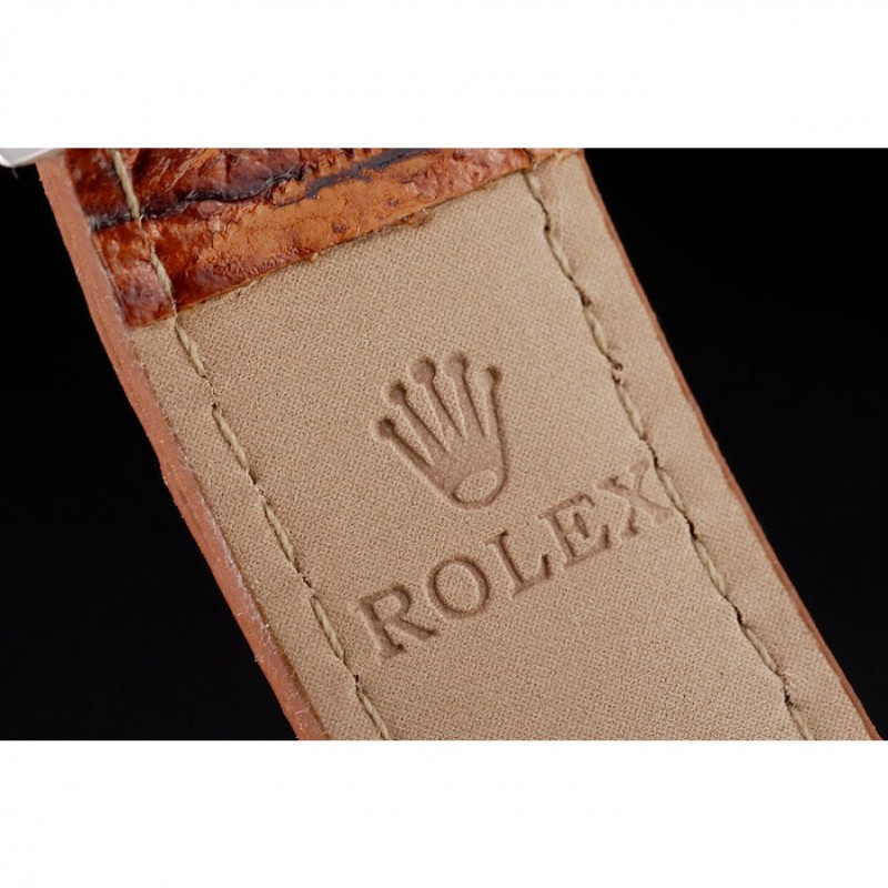 pulsera: correa de piel de cocodrilo marrón en relieve de calor Rolex con grabado cierre desplegable de acero inoxidable con el logotipo de Rolex en la parte superior