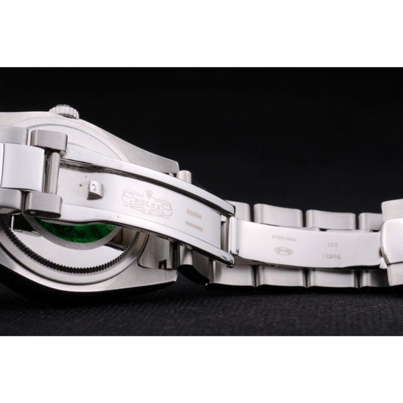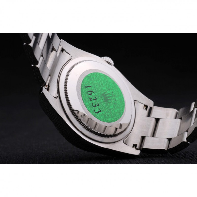 Volver: de acero inoxidable de empuje en el caso de vuelta con el sello grabado Rolex verde