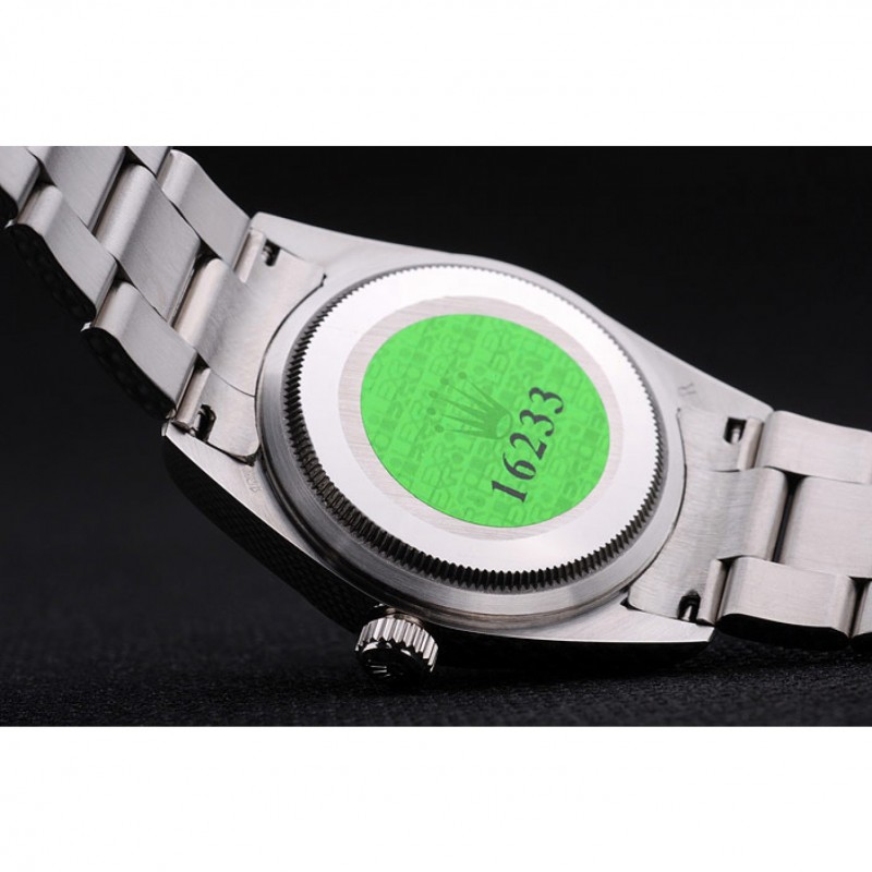 Volver: de acero inoxidable de empuje en el caso de vuelta con el sello grabado Rolex verde