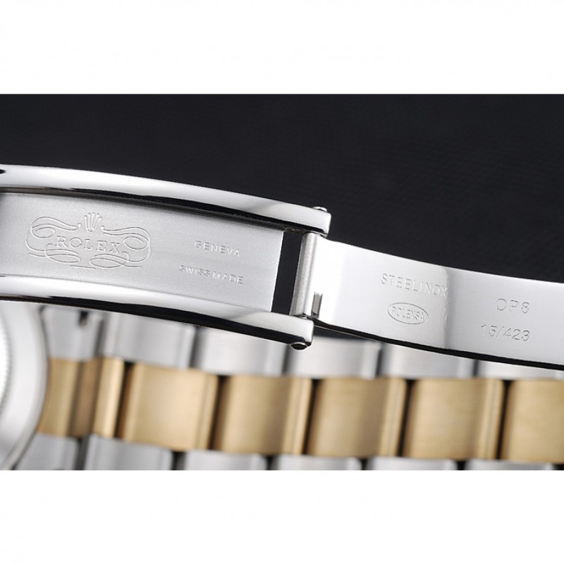 pulsera: dos tonos tono brazalete de eslabones de acero inoxidable cepillado y oro con el grabado Rolex pliegue en el corchete con el logotipo de Rolex