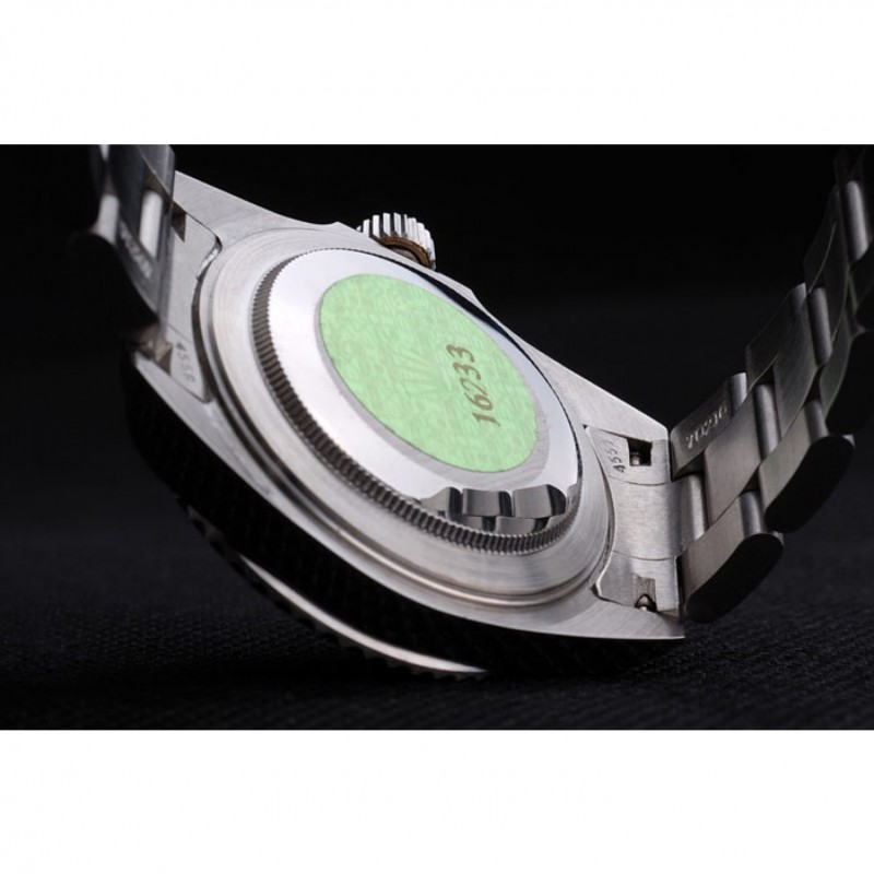Volver: pulsador de acero inoxidable en el caso de vuelta con el sello grabado Rolex verde