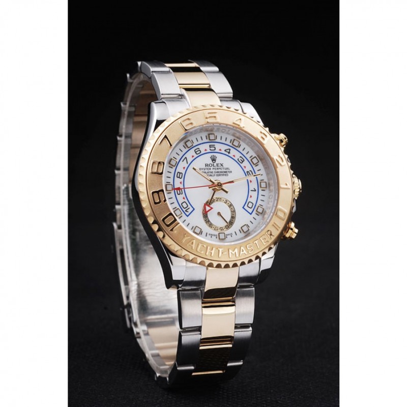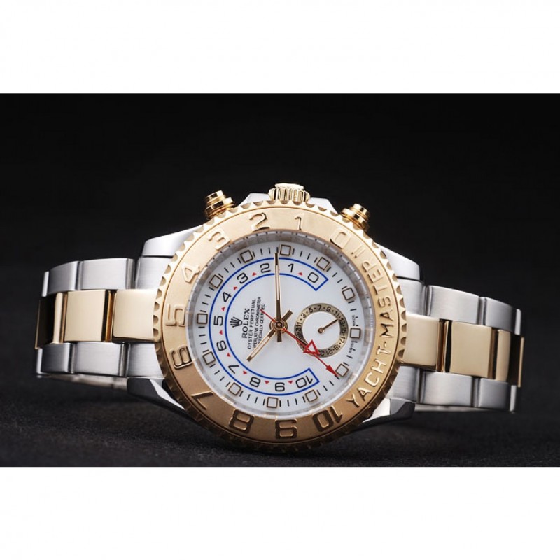 bisel: de oro amarillo plateado bisel cutwork unidireccional con 1 a 10 marcas y Yacht Master grabado en un esmaltado azul fondo